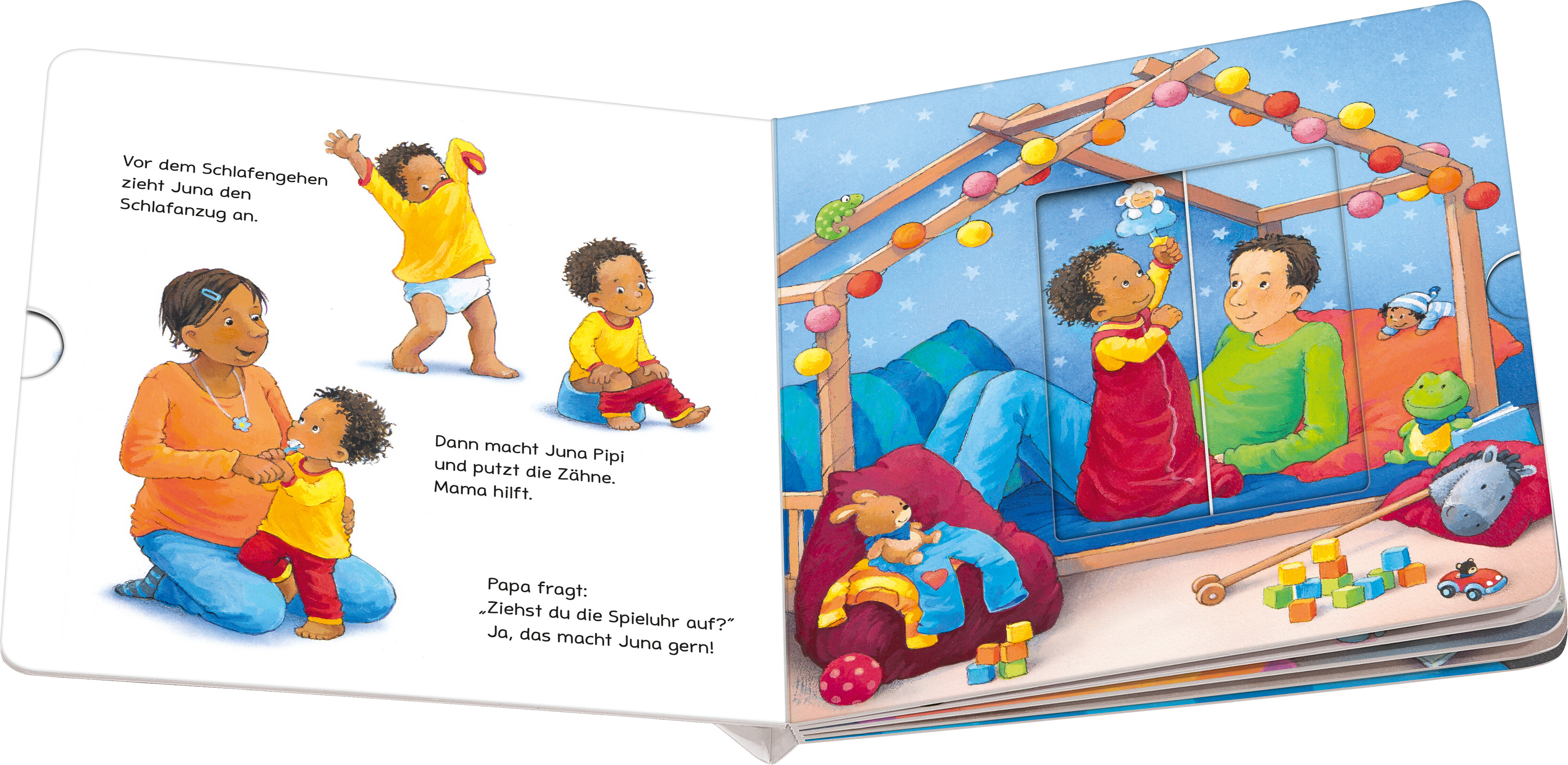 Einschlafen leicht gemacht! Jedes Kind hat ein anderes Einschlafritual: Mika liebt es, wenn Mama vor dem Schlafengehen noch eine Geschichte vorliest, Anna braucht ihr Schlummerlicht, und nach einem Gutenachtkuss schlafen auch Maya und Carlo ein. Lustige Schieb...