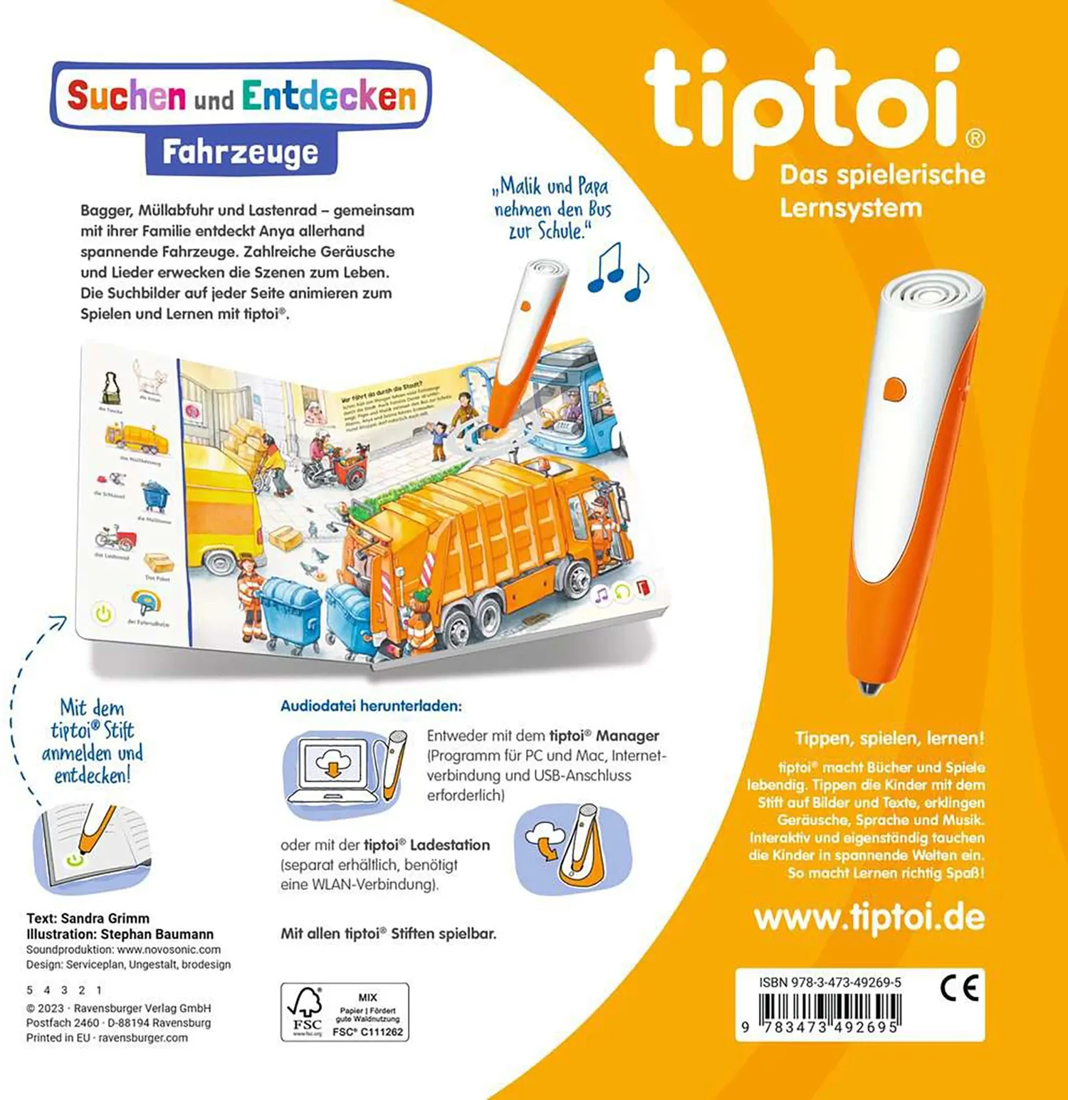 Ravensburger 49269 tiptoi® Suchen und Entdecken: Fahrzeuge tiptoi Bilderbuch Auf der Suche nach einem Buch über Bagger, Traktoren, Autos und allem, was fährt? Mit tiptoi entdecken schon die Kleinsten ihre Lieblingsfahrzeuge. Auf 7 liebevoll gestalteten Doppels...