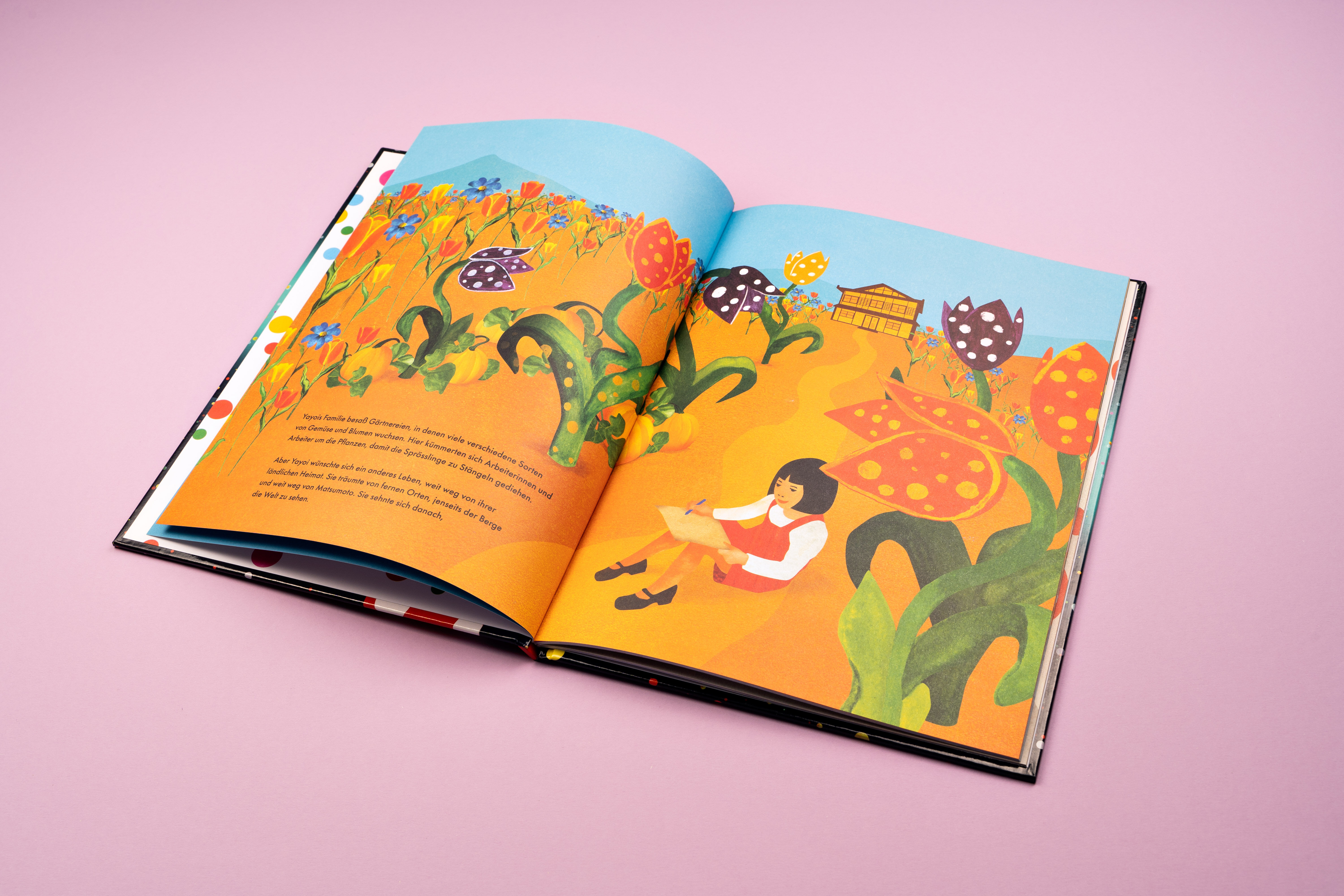 Als junges Mädchen begann Yayoi Kusama eines Tages zu halluzinieren, dass die Welt und alles darin die Pflanzen, die Menschen, der Himmel mit Tupfen bedeckt sei. Sie fing an, außergewöhnliche Kunstwerke zu schaffen. Gemälde, Zeichnungen, Skulpturen und sogar ihren Körper verzierte sie mit abertausenden Punkten. Aber damals war es für eine junge Frau sehr schwer, in der von alten Traditionen geprägten Kunstwelt Japans Fuß zu fassen. Erst recht für eine, die mit ihrer Kunst die Welt in unendlich viele Punkte auflöste. Aber Yayoi war fest entschlossen. Sie wollte Künstlerin werden und alle teilhaben lassen an der Art, wie sie die Welt sah. Yayoi ging nach New York, bereiste die ganze Welt, inspirierte Andy Warhol und die Pop-Art und wurde schließlich zu einer der berühmtesten und beliebtesten Künstlerinnen aller Zeiten.