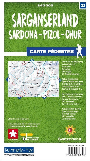 Sarganserland - Sardona - Pizol - Chur Nr. 22 Wanderkarte 1:40 000