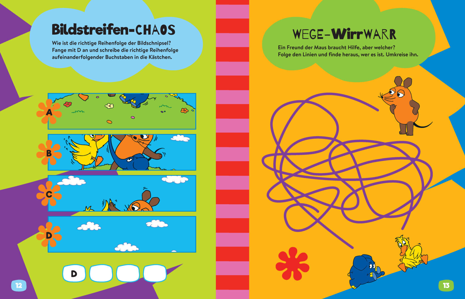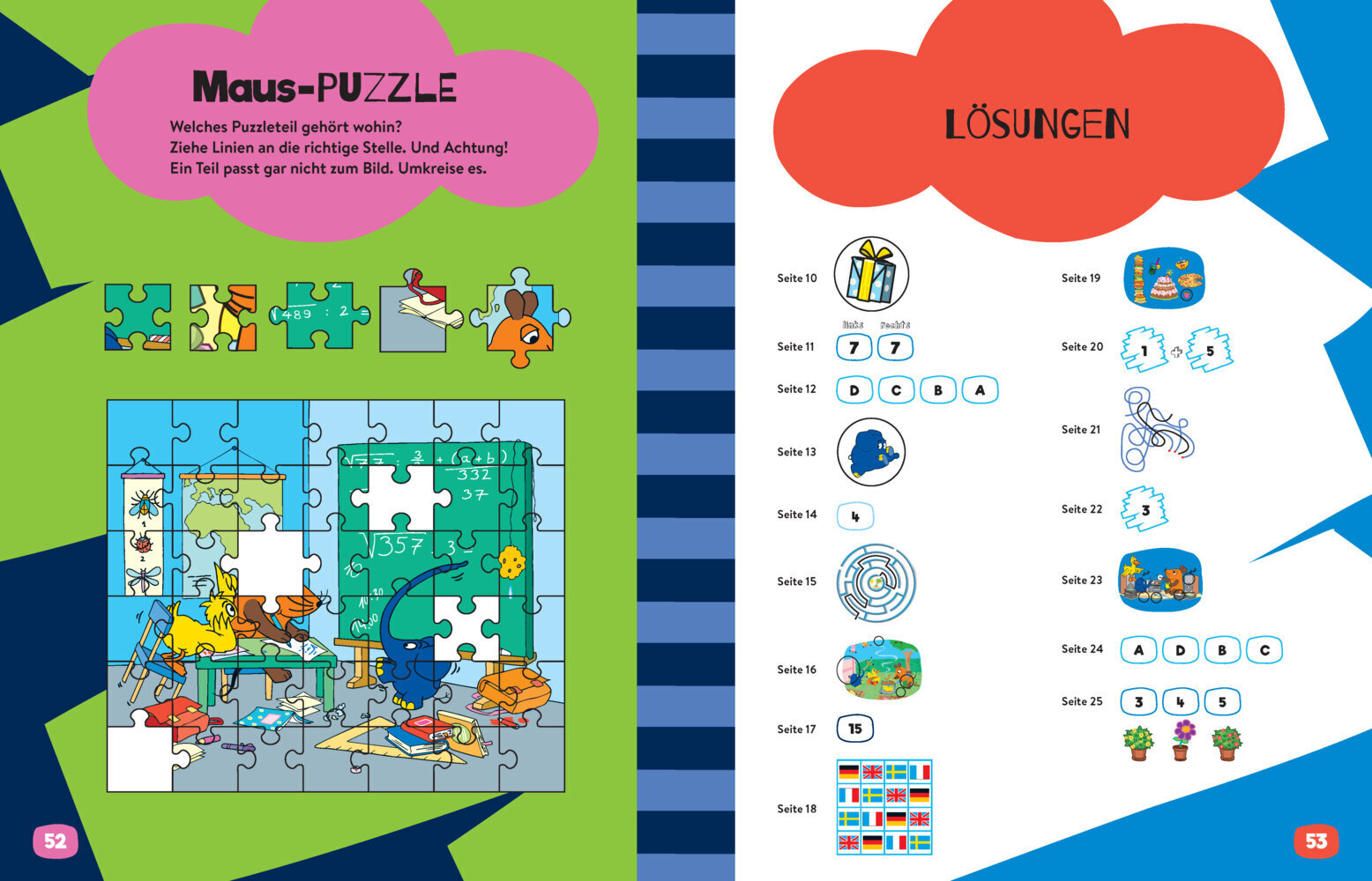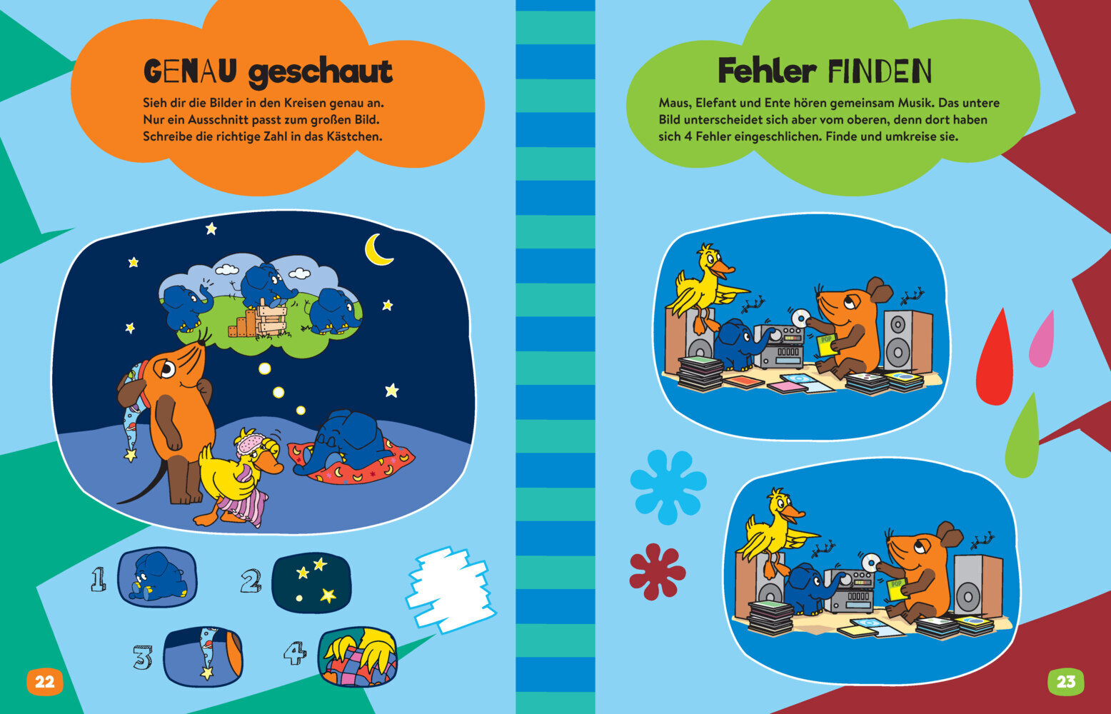 _ Hier steckt alles drin: Rätseln, Malen, Basteln und Stickern mit Maus, Elefant und Ente - Altersgerechte Rätsel mit spielerischem Lerneffekt - Niedliche Ausmalbilder und tolle Bastelprojekte zum Ausschneiden - Mit vielen bunten Stickern der Maus und ihrer Fr...