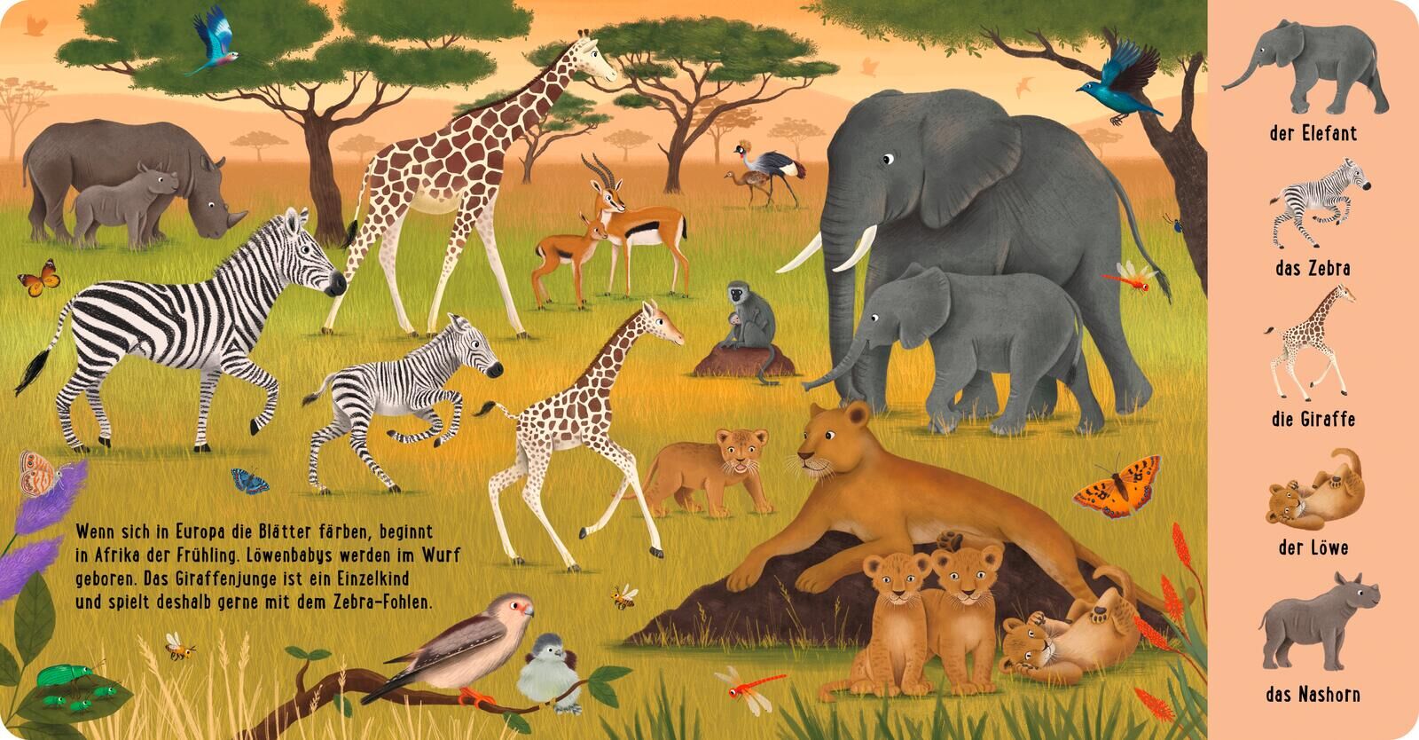 Die ganze Tierwelt in einem Buch - eine Entdeckungsreise von der heimischen Wiese bis in die weite Steppe Afrikas. In diesem ersten Natur-Wimmelbuch entdecken Kinder ganz spielerisch die Natur und die Jahreszeiten: Ob Ameise, Biber oder Zebra - hier sind alle...