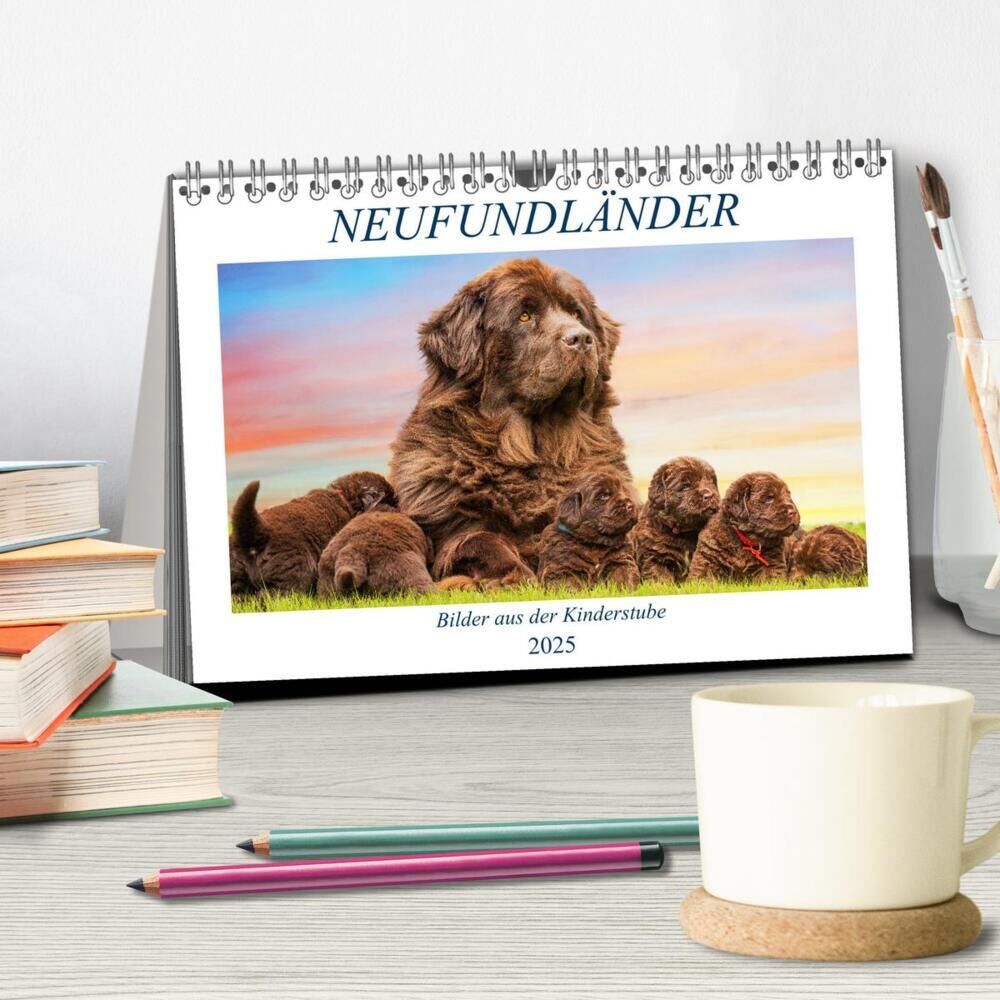Neufundländer - Bilder aus der Kinderstube (Tischkalender 2025 DIN A5 quer), CALVENDO Monatskalender