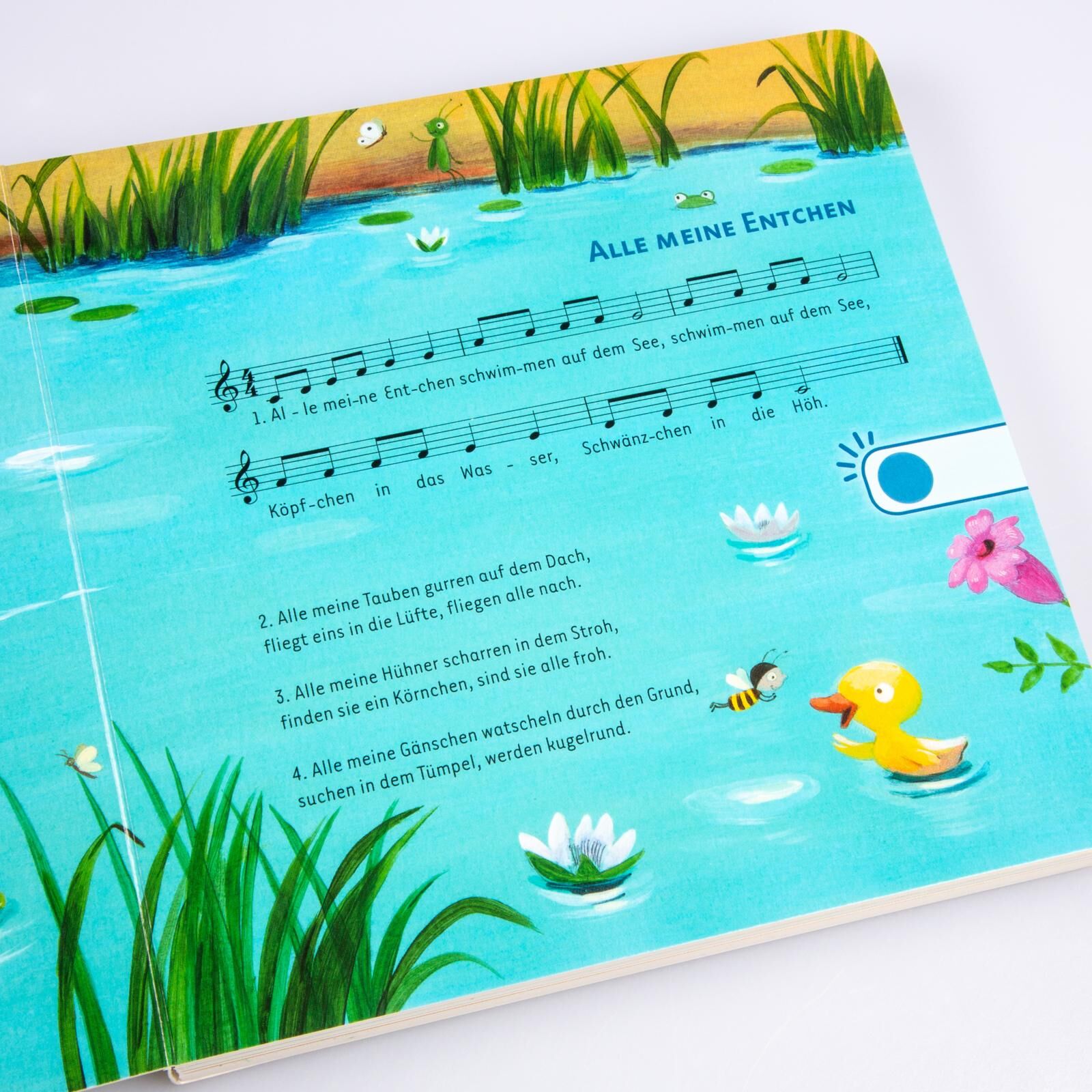 Mitsingen erwünscht! Tönendes Buch Instrumentalbegleitung zu je sechs beliebten Kinderliedern Autorentext Marina Rachner, 1971 geboren, studierte an der Fachhochschule für Gestaltung in Hamburg und arbeitet seither als freie Illustratorin für mehrere Verlage. ...