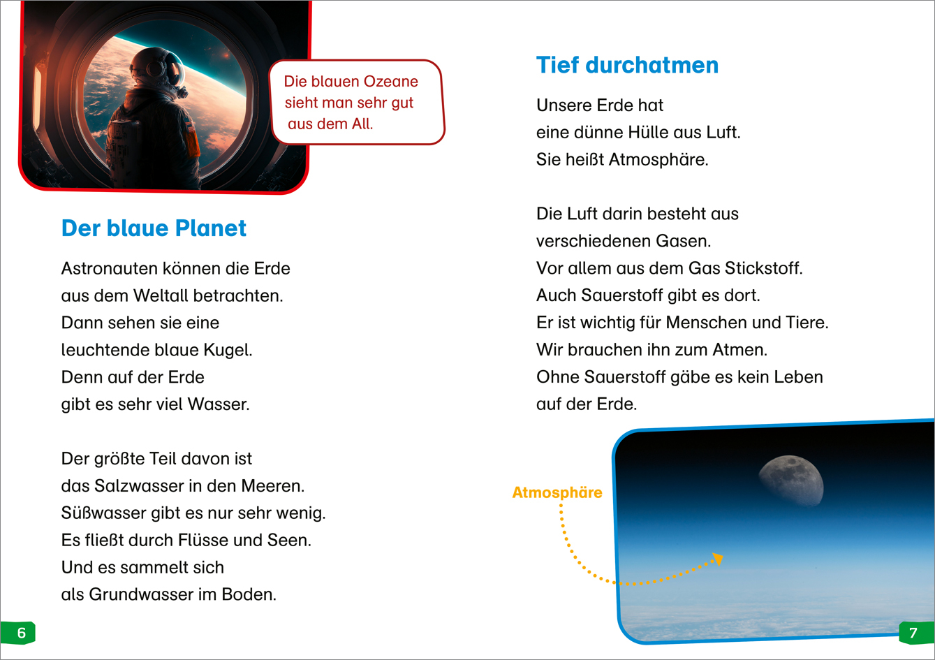 Die Erde ist unser Platz im Weltall. Seit Millionen von Jahren entwickeln sich Pflanzen, Lebewesen und auch die Erde selbst. Die Kontinentalplatten, das Salz- und Süßwasserwasser, die Atmosphäre - alles ist im Wandel. Leseanfängerinnen und Leseanfänger erfahre...