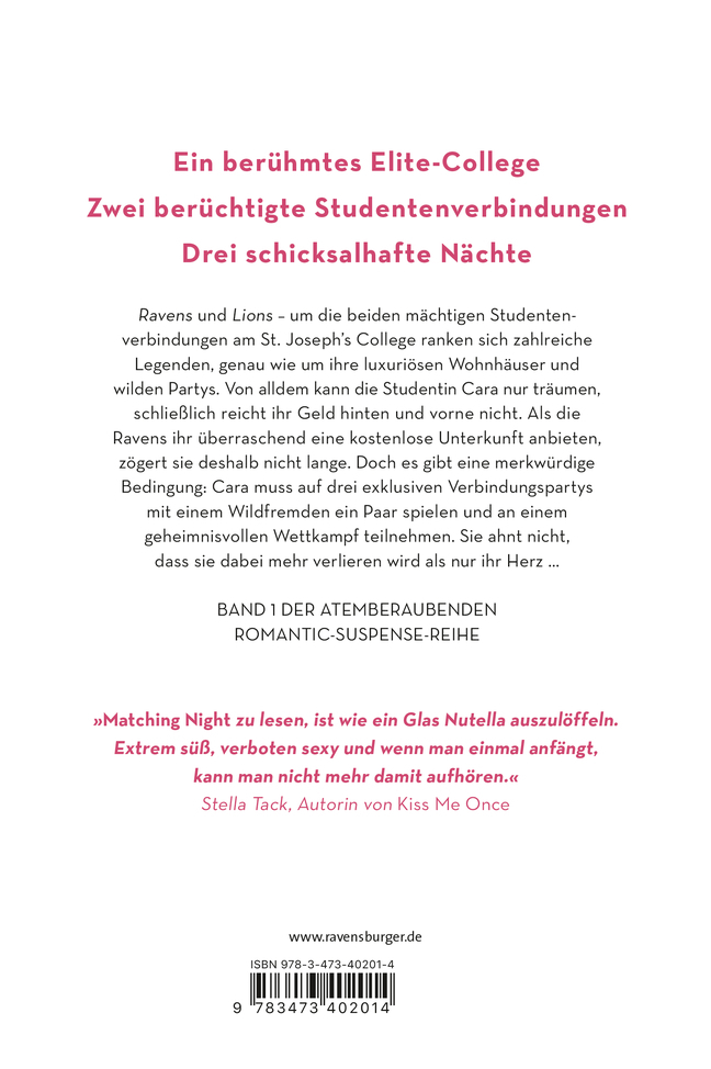 Ein berühmtes Elite-College. Zwei berüchtigte Studentenverbindungen. Drei Nächte, die über dein Schicksal entscheiden. Ravens und Lions - um die beiden mächtigen Verbindungen am St. Joseph's College ranken sich zahlreiche Legenden, genau wie um ihre luxur...