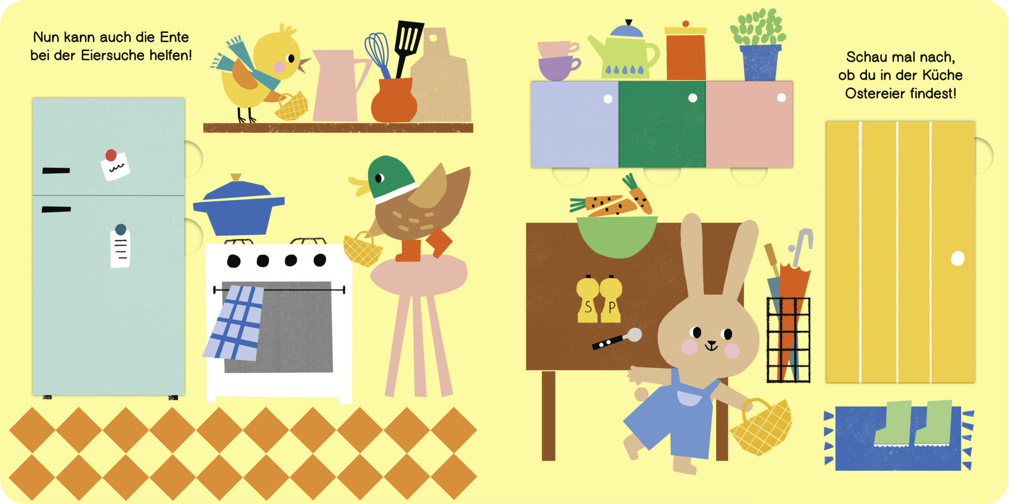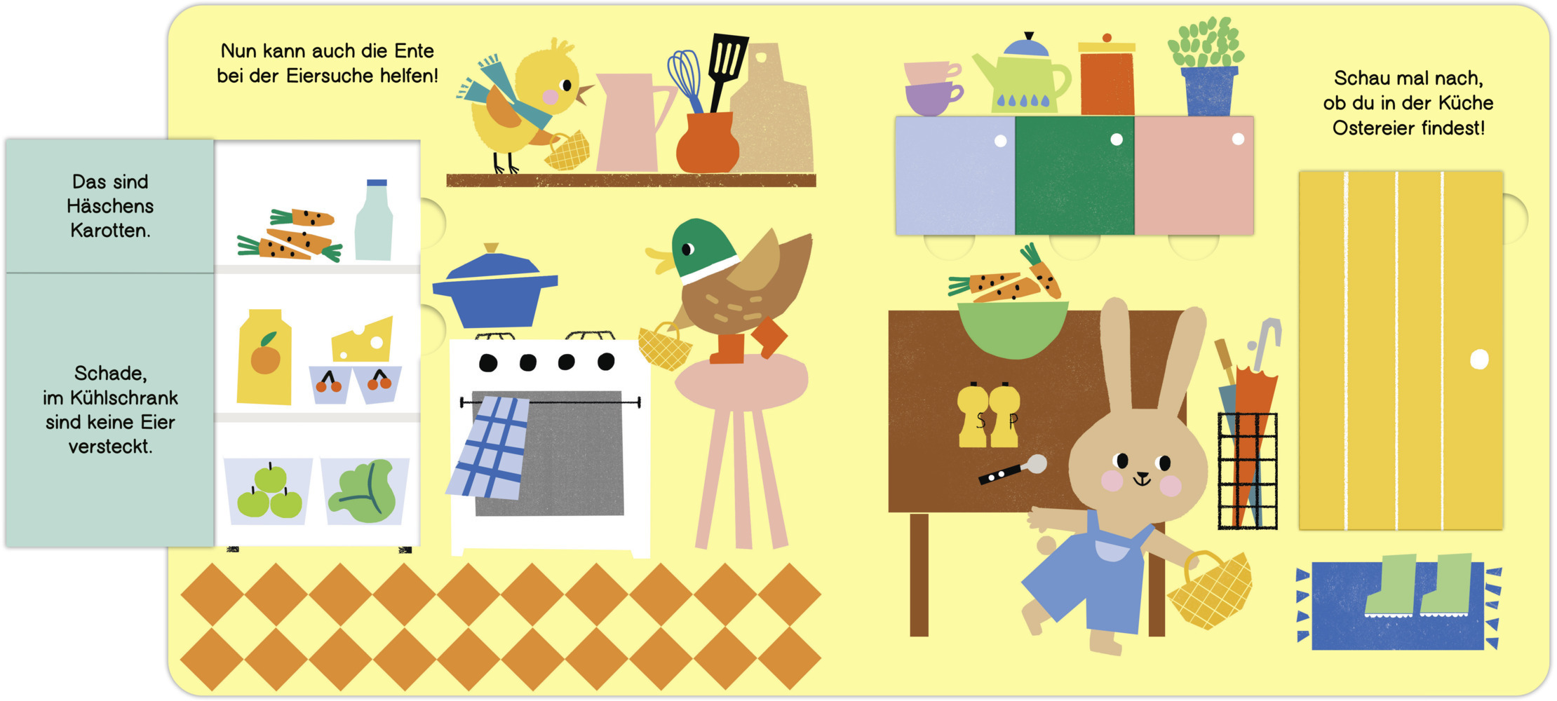 Kunterbuntes Osterbuch mit 22 Klappen! Heute ist ein aufregender Tag für den kleinen Hasen! Es geht auf große Osterei-Sucherei und Küken, Ente und Schäfchen helfen mit. Hinter 22 Klappen sind die bunten Ostereier versteckt und manchmal entdeckt man auch eine ...