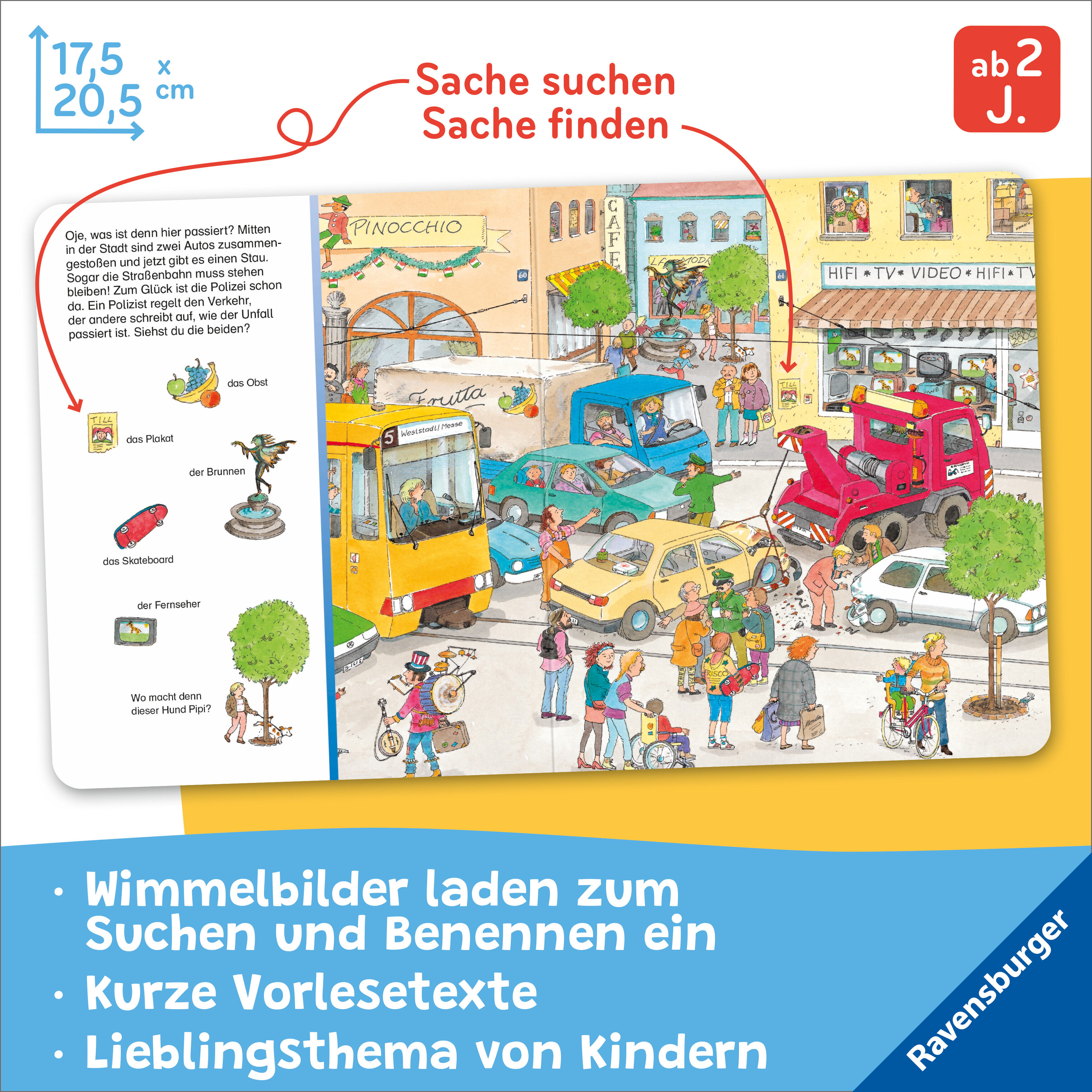 Aufgepasst hier kommen sie angefahren: Alle Fahrzeuge die du schon kennst und viele, viele Neue dazu! Mit Bus und Straßenbahn geht es in die Stadt. Ein Abschleppwagen wird zu einem Unfall gerufen und auf dem Bauernhof fährt gerade der Traktor hinaus aufs Feld....