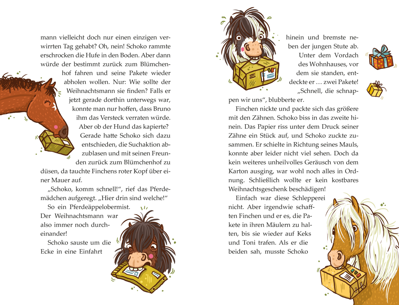 Wieso landen auf einmal so viele Geschenkpakete auf dem Blümchenhof? Es ist doch noch gar nicht Heiligabend! Schoko ist besorgt: Ist der Weihnachtsmann vielleicht aus irgendwelchen Gründen plötzlich verwirrt und hat sich im Tag geirrt? Um das Weihnachtsfest ih...