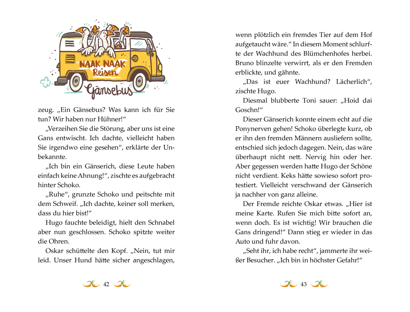 Die Haferhorde - Gans schön gefährlich! Nanu? Schoko traut seinen Ponyaugen kaum - flattert da tatsächlich eine Gans über den Blümchenhof? Aber nein, er ist natürlich ein Gänserich, stellt Hugo klar. Und er wird verfolgt, von bösen Zweibeinern! Logo, dass Scho...