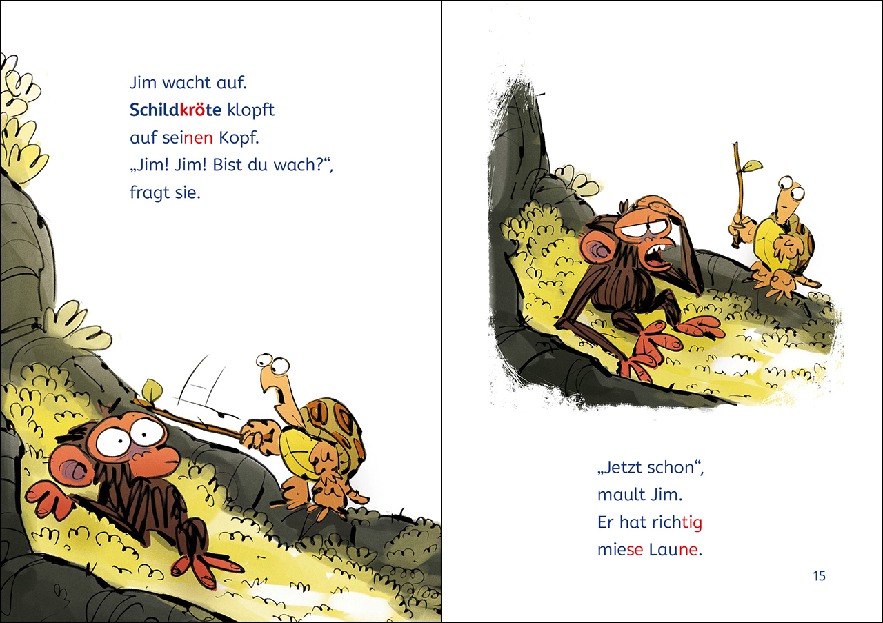Leselöwen 1. Klasse - Jim ist mies drauf - Fertig, los ... Banane! Jim ist mies drauf! Er hätte gern seine Ruhe, aber Schildkröte möchte unbedingt mit ihm beim großen Wettrennen mitmachen. Können sie zusammen gewinnen? Und wie wird Jim seine miese Laune los? D...