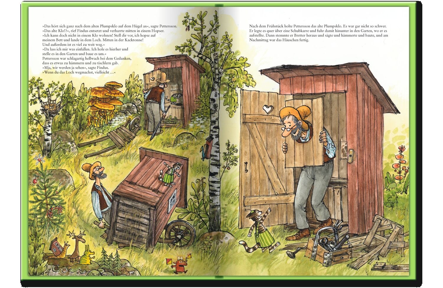 Hüpfen macht das Leben schöner! Wenn Findus aufwacht, muss er einfach auf seinem Bett hüpfen. Aber um vier Uhr morgens ist Pettersson davon nur genervt. Also entschließt sich Findus, ins Plumpsklo im Garten zu ziehen. Aber nachts ist es dort viel unheimlicher,...