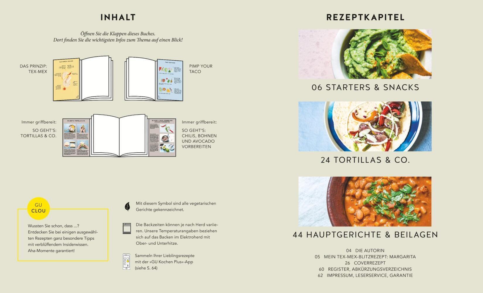 Hinweis zur Optimierung Impressum »GU-Kochen-Plus«-App Backzeiten Das Schwarze Blatt Tanja Dusy Mein Tex-Mex-Blitzrezept: Margarita Starters & Snacks Tortillas, Tacos, Burritos & Co. Hauptgerichte und Beilagen Das Prinzip: Tex-Mex So geht's: Tortillas & Co. Typisch Tex-Mex Kleine Chilikunde So geht's: Chilis, Bohnen und Avocado vorbereiten Pimp your Taco Die Autorin Die Fotografin
