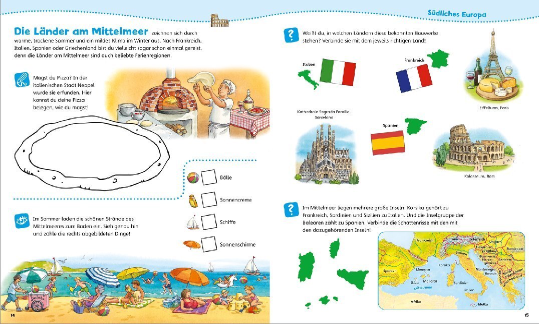 Einmal quer durch Europa reisen und dabei Wissenswertes über Menschen, Tiere und Landschaften erfahren! Von den Schlittenhunden im Norden bis zu den Tempeln der Griechen im Süden gibt es auf diesem Kontinent viel zu entdecken. Ganz spielerisch lernen Kinder ab...