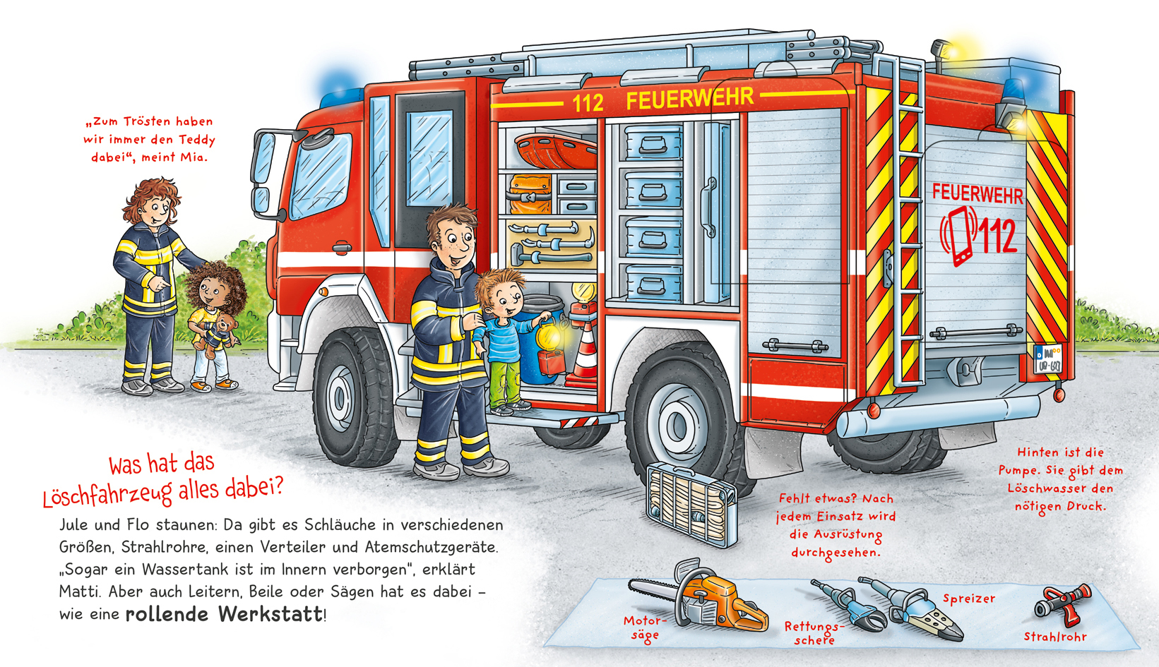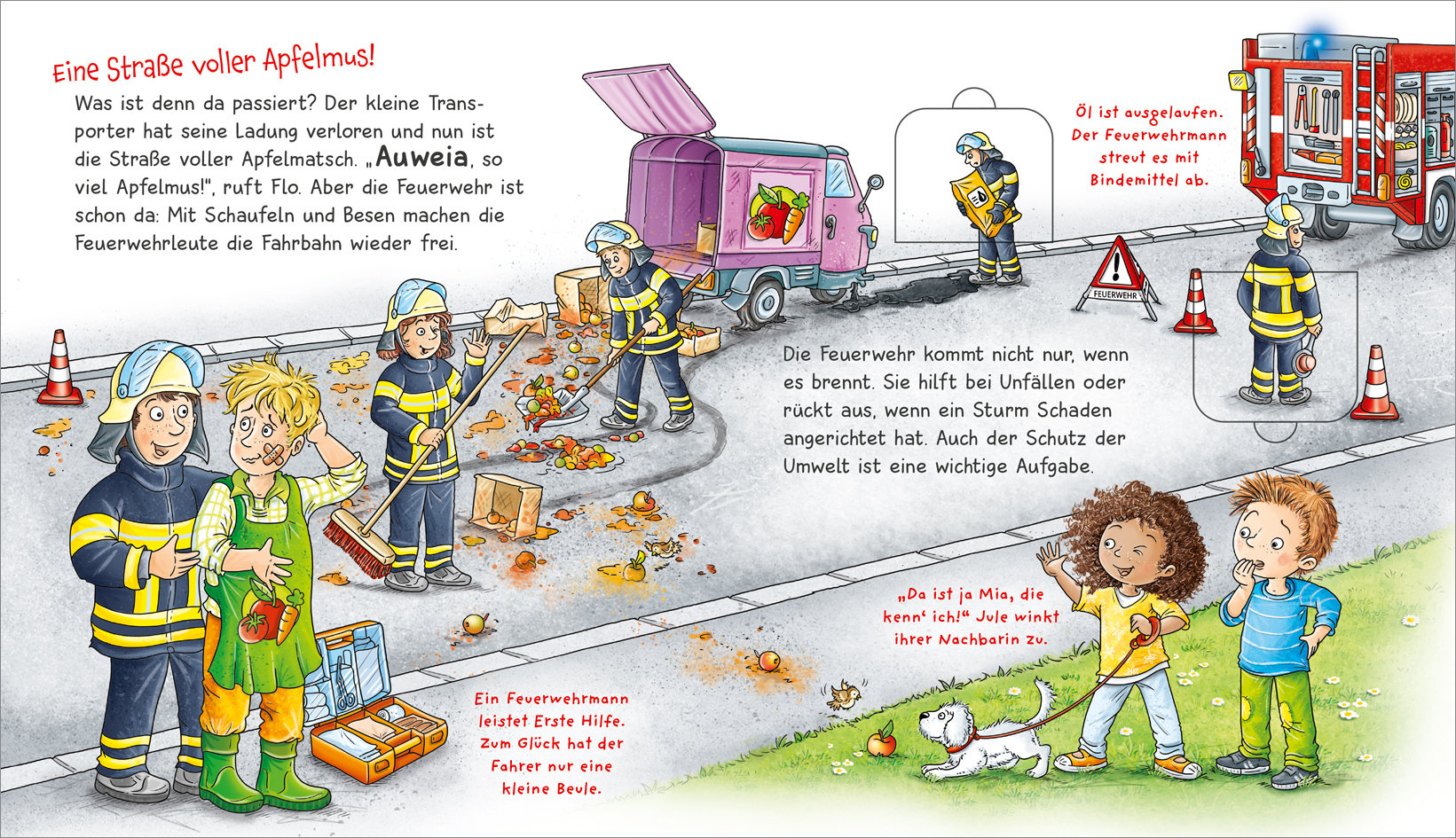 Ganz schön aufregend! Die Freunde Flo und Jule werden erleben einen Einsatz der Feuerwehr hautnah mit und wollen mehr über die Arbeit der Feuerwehrleute erfahren. Sie besuchen die große Feuerwache und dürfen dort die Fahrzeughalle, Werkstätten und Ruheräume er...