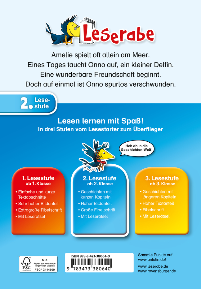 Amelie spielt oft allein am Meer. Eines Tages taucht Onno auf, ein kleiner Delfin. Eine wunderbare Freundschaft beginnt. Auf einmal ist Onno spurlos verschwunden. Ob ihm etwas zugestoßen ist? Lesen lernen wie im Flug! Die Kinderbücher der Reihe Leserabe - 2. L...