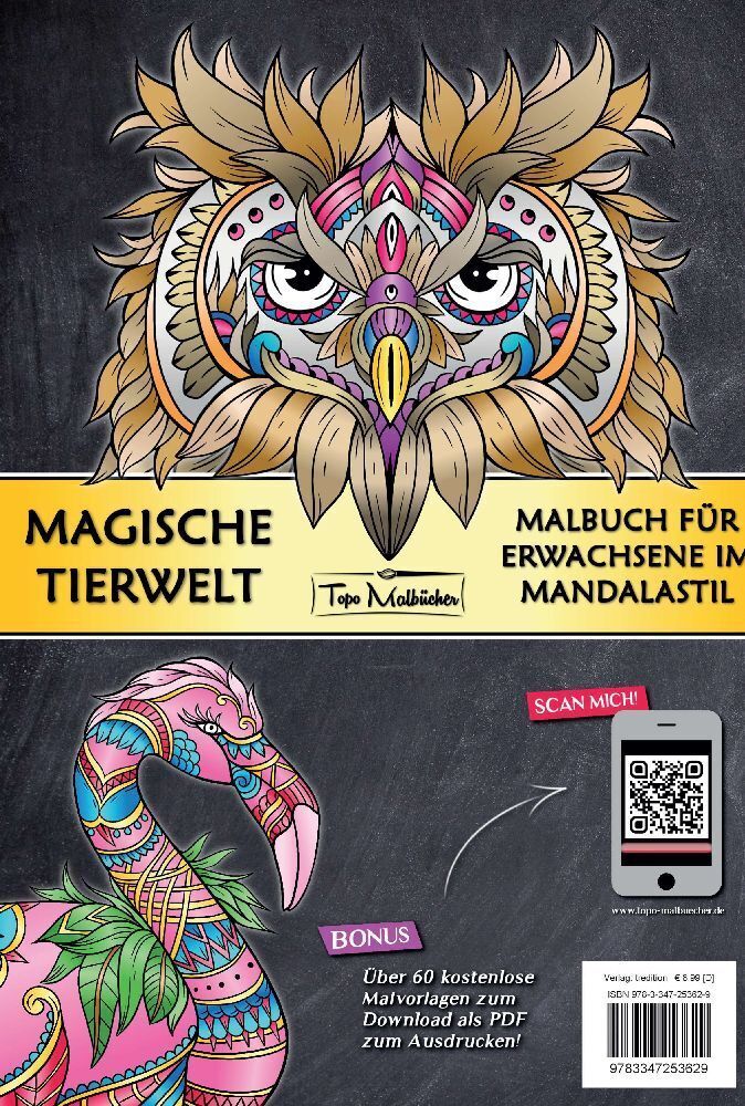 Malbuch für Erwachsene Tiere im Mandalastil Unser Ausmalbuch Mandala-Tiermalbuch für Erwachsene ist mit viel Liebe zum Detail entstanden. Unsere besonderen Tiermotive warten nur darauf von Ihnen ausgemalt zu werden. Wir von Topo Malbücher haben sehr viel Erfah...