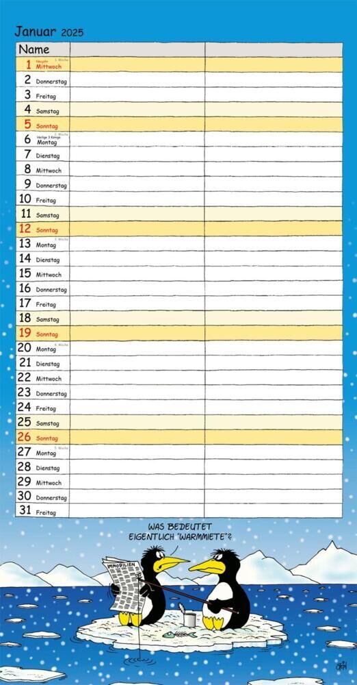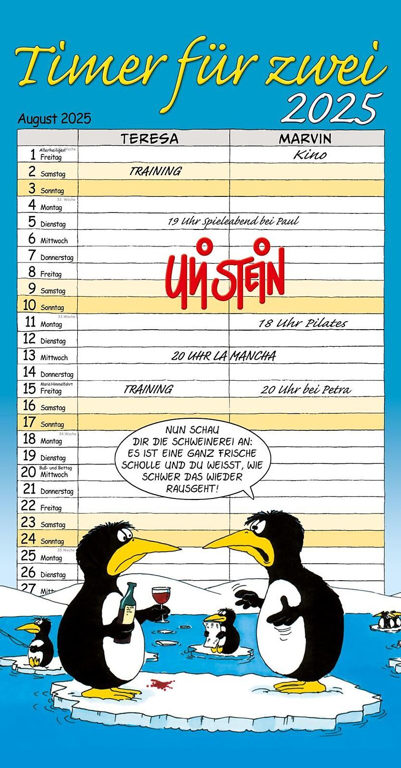 Ein Monatsplaner für zwei: So entwirren Sie Terminekollisionen im Handumdrehen! Uli Steins "Timer für zwei" ist ein praktischer Monatskalender für 2025, mit dem Paare ganz einfach Monat für Monat ihre Termine und lustige Cartoons im Blick haben. Dab...