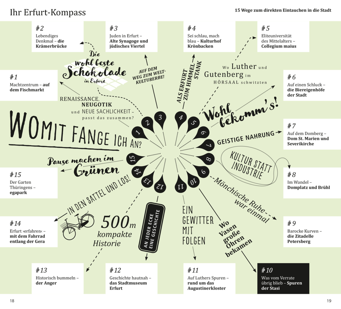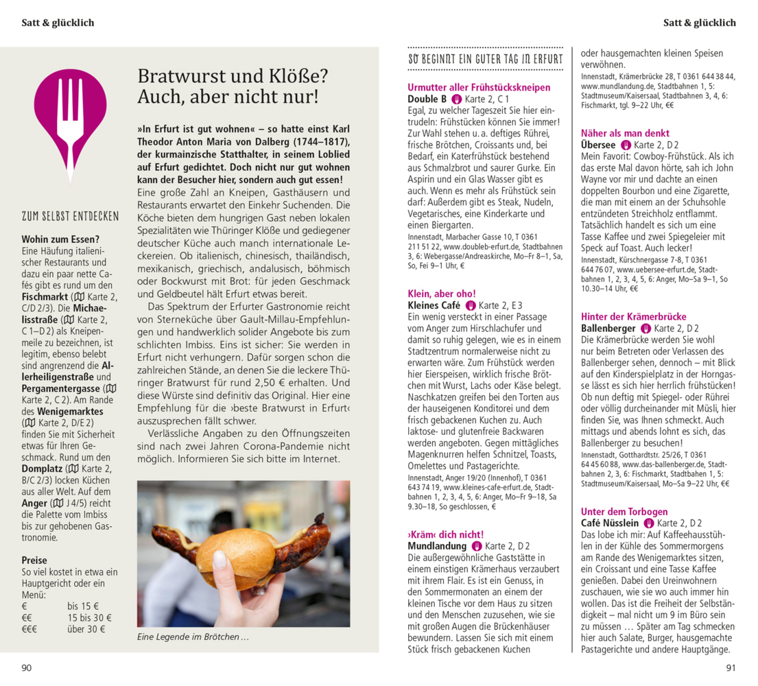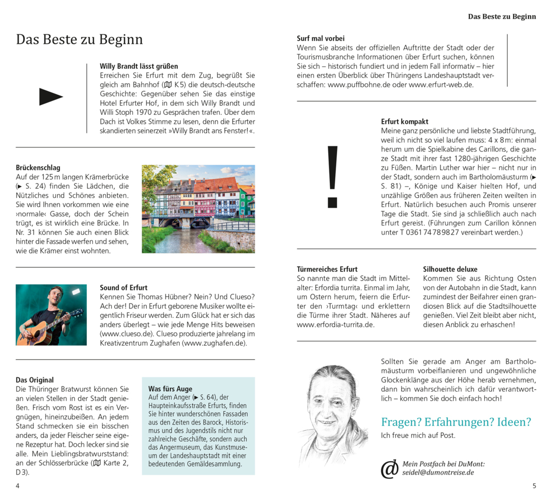 Das »Erford fedsd!« finden die Erfurter, denn ihre türmereiche Heimatstadt geht nicht nur als beschauliche Kleinstadt durch, sondern auch als quirlige Großstadt. Beneidenswertes Thüringen, das in der Bach- und Lutherstadt gleich beiderlei Lebensgefühl besitzt...