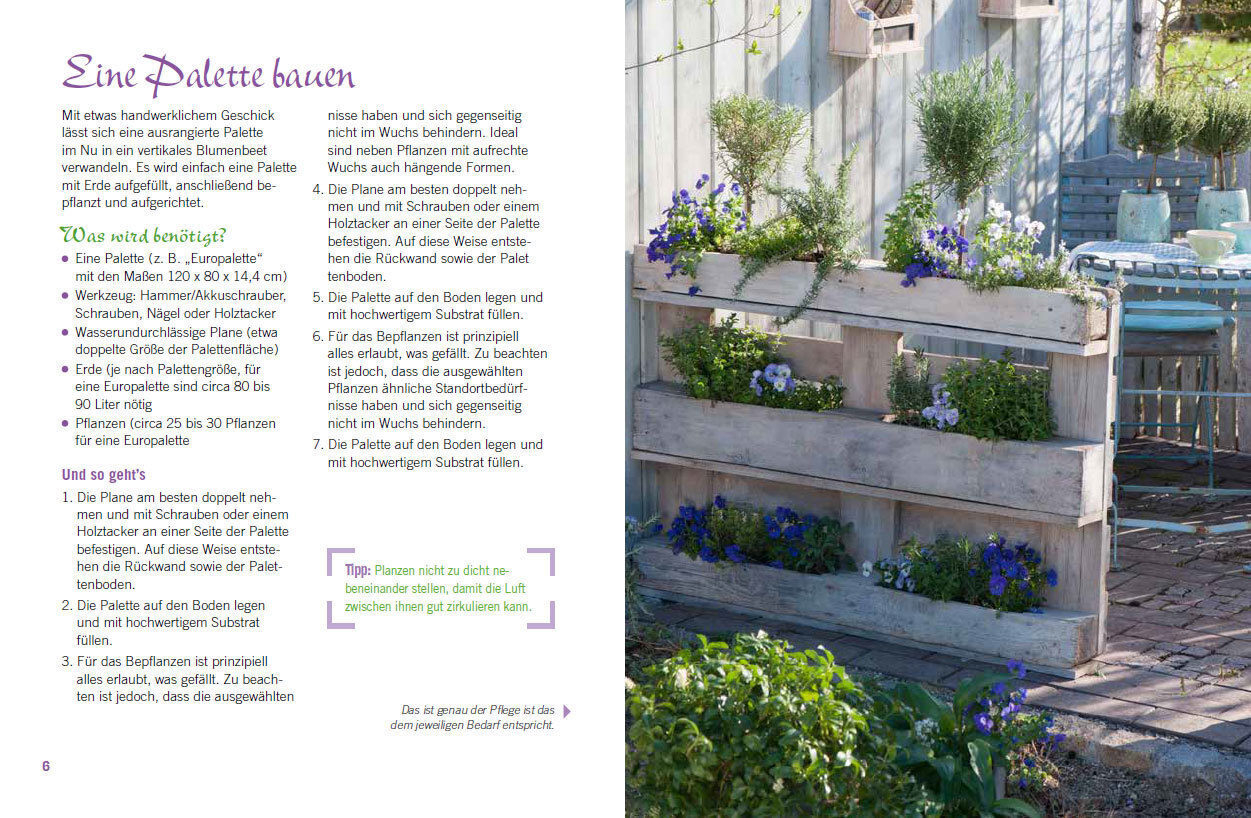 Grüne Oase auf kleinstem Raum Einen Wandgarten anzulegen ist einfacher als gedacht: Paletten, Holzkisten oder Plastikflaschen lassen sich leicht in attraktive Pflanzbehälter für den vertikalen Garten verwandeln. Befüllt mit Blumen und Kräutern, Obst- und Gemüs...