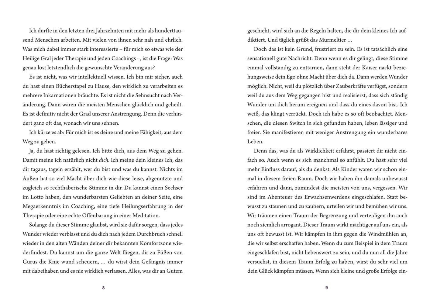 wunderwerk ist das sanfteste und zugleich radikalste Buch, das ich je geschrieben habe. Sanft, weil es nicht darum geht, dich noch mehr anzustrengen. Im Gegenteil. Ich lade dich ein, aufzuhören, gegen dein Licht und die Wunder deines Lebens zu kämpfen. Geh einfach mit deinem Rechthaben und deiner ermüdenden Einzelanstrengung aus dem Weg und lass das geschehen, wonach du dich schon so lange sehnst. Öffne dich für die Magie des Lebens. Es ist zugleich das radikalste meiner Bücher, weil es sich auf die Wurzel allen Leids und allen Glücks konzentriert - deinen Geist.