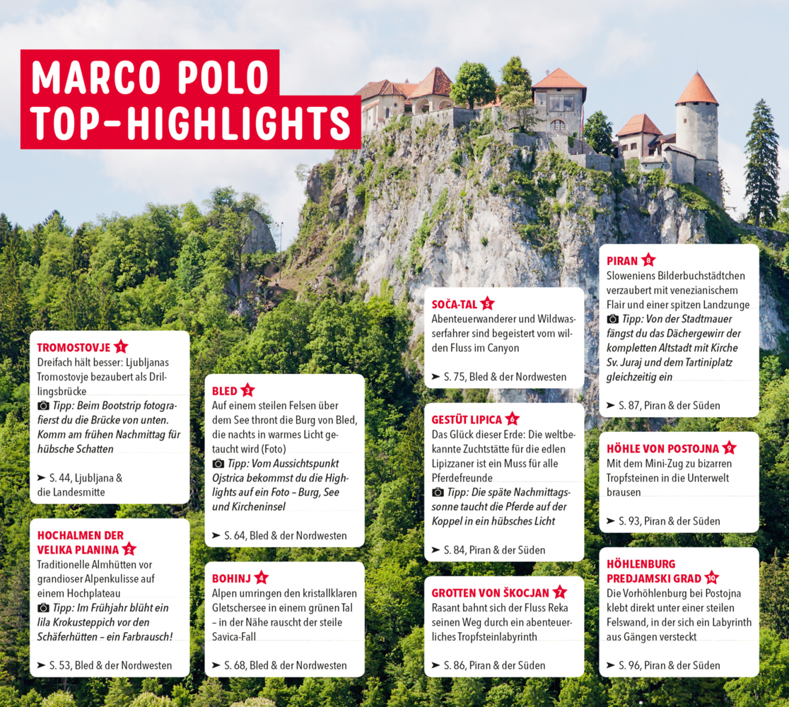 Erlebe mediterranes Dolce Vita an der Adria mit dem MARCO POLO Reiseführer Slowenien Berge oder Meer, grüne Landschaften oder Seen: Slowenien ist klein, aber unglaublich vielfältig! An ein und demselben Tag kannst du Burgen, Tropfsteinhöhlen und mittelalterli...