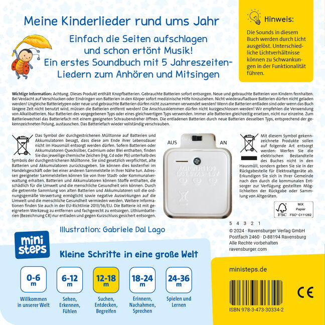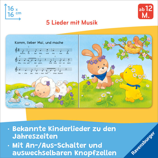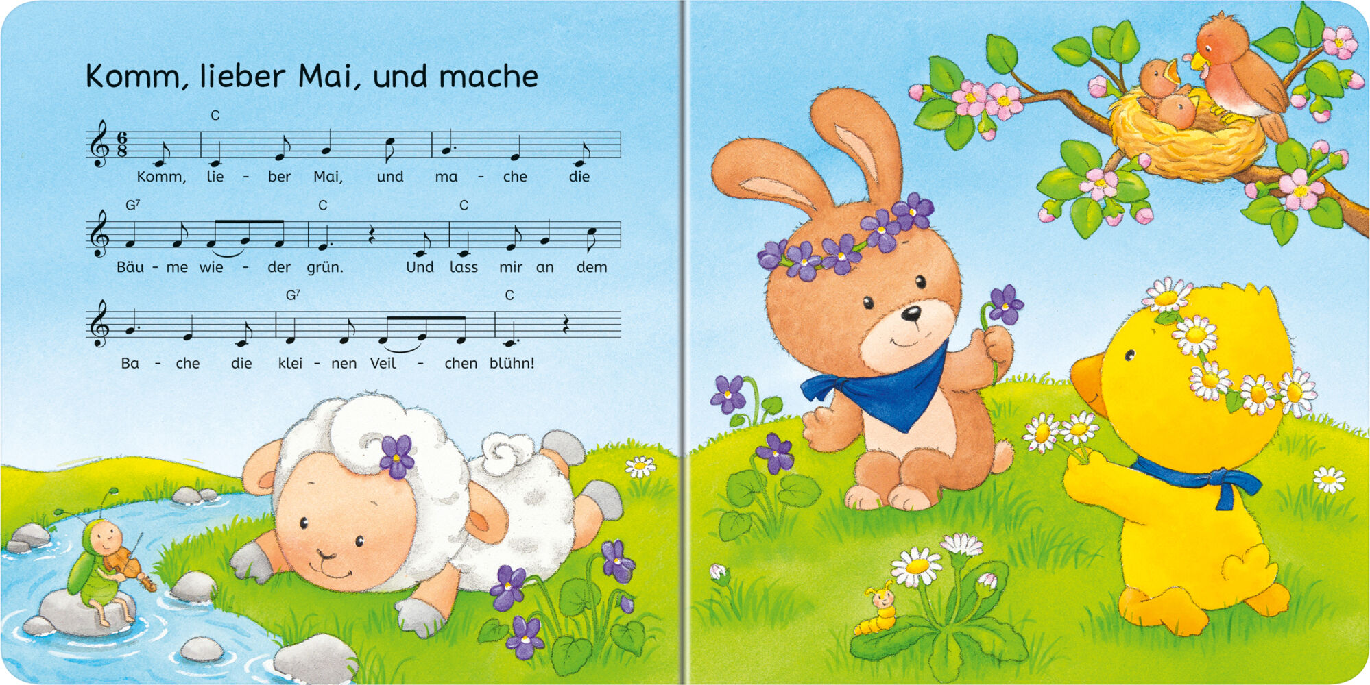 5 Lieblingslieder zum Singen, Klatschen und Tanzen Fünf Kinderlieder erklingen wie durch Zauberei wenn die Seiten aufgeschlagen werden. So können schon Einjährige ihr Lieblingslied selbst aussuchen und ohne Hilfe anhören. "Komm, lieber Mai und mache"...