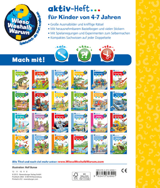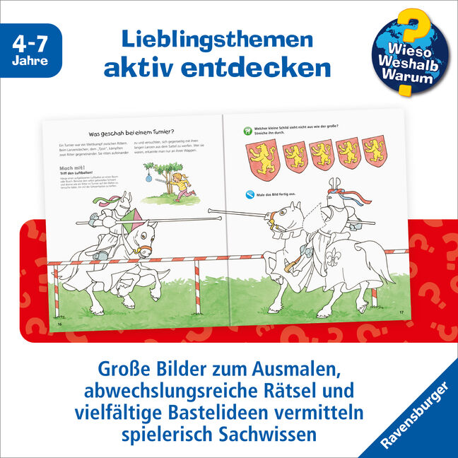 Wie wurde man Ritter? Was geschah bei einem Turnier? Große Ausmalbilder, knifflige Rätsel, einfallsreiche Bastelideen und Experimente laden Kinder zum aktiven Entdecken ein. Mit kurzen Wissenstexten, über 20 Stickern und einem Bastelbogen. Wieso? Weshalb? Waru...