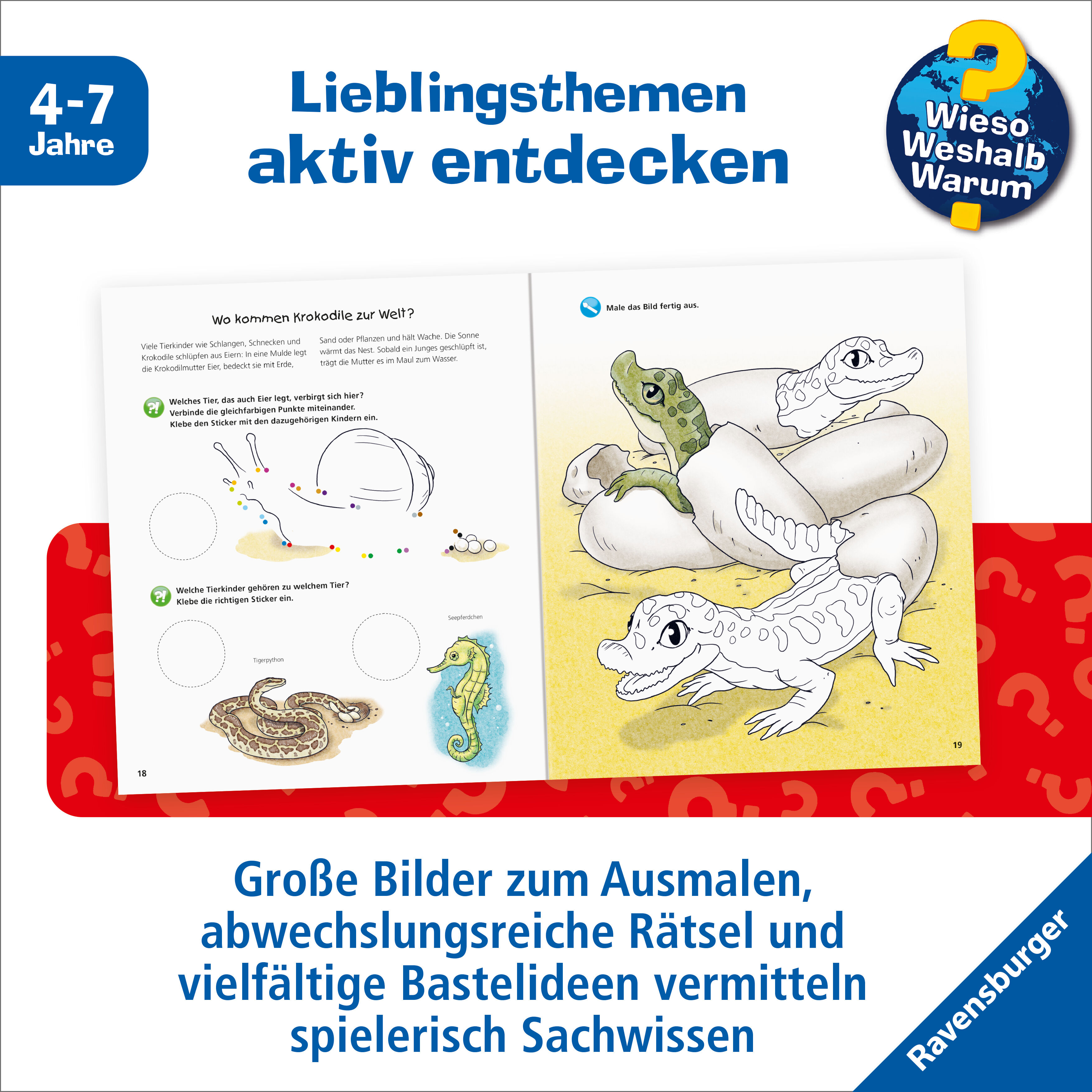 Welche Tiere bekommen viele Kinder? Was ist ein Nestflüchter? Große Ausmalbilder, knifflige Rätsel, attraktive Bastelideen und Experimente laden Kinder zum aktiven Entdecken ein. Mit kurzen Wissenstexten, über 25 Stickern und einem Bastelbogen. Wieso? Weshalb?...