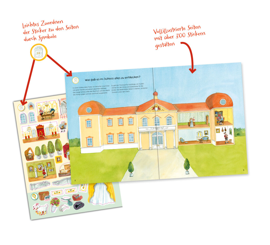 Wie lebte eine Prinzessin? Was zog man zu einem Ball an? Wie wurde man Königin? Mit über 300 Stickern richten Kinder ein Barockschloss ein, üben Tanzschritte für den Ball und kleiden Prinzessin und Prinz standesgemäß. Dazu gibt es viele spannende Infos zum All...