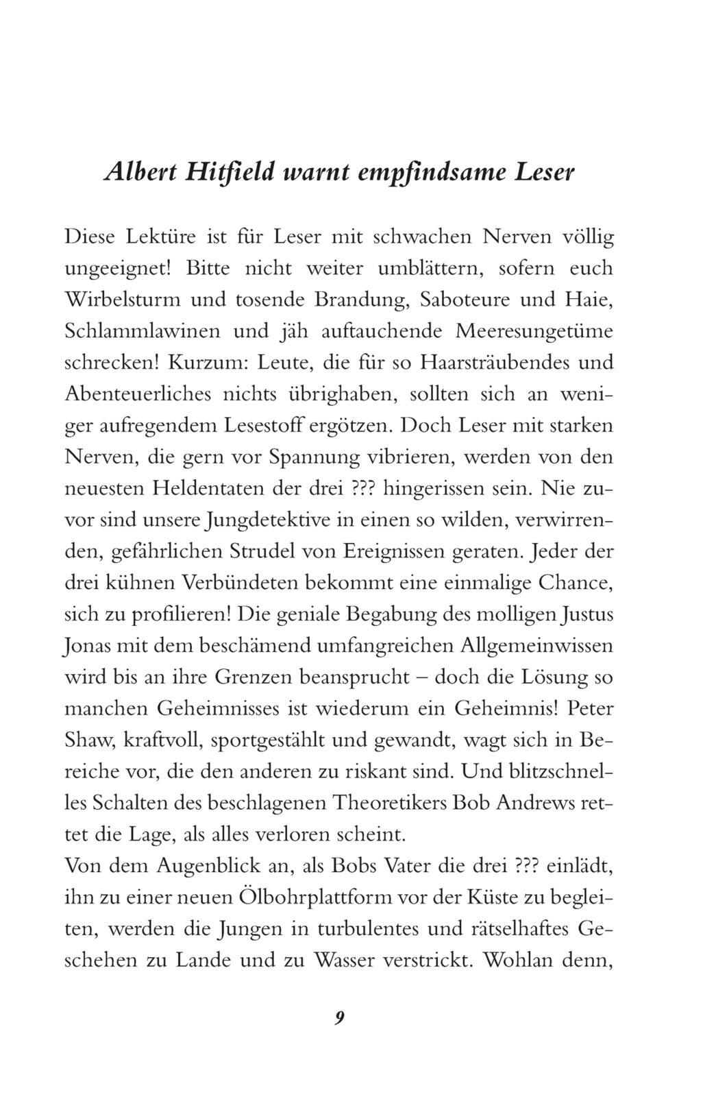 Zwei knifflige Fälle im Doppelband! Die drei ??? besuchen eine Bohrinsel. Umweltschützer wollen dort die Ölförderung verhindern, da die Sicherheit der Anlage nicht gewährleistet ist. Doch dann muss das Flaggschiff der Umweltschützer wegen eines rätselhaften T...