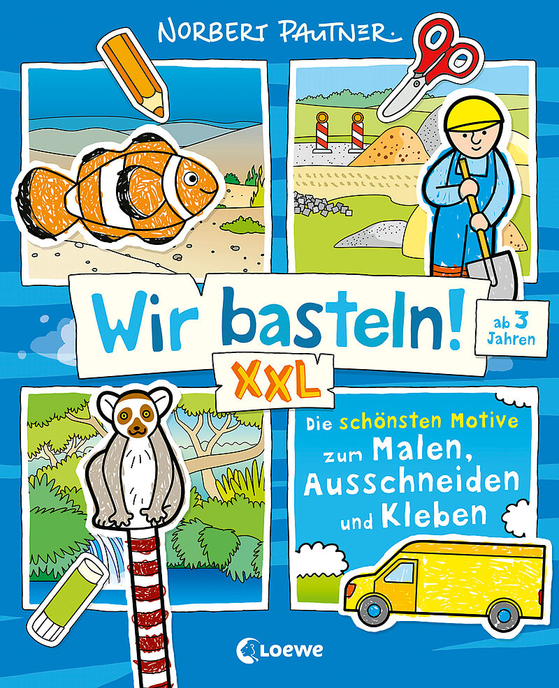 Die schönsten Wir basteln!-Motive in einem Band - Male alle Bilder bunt aus. - Schneide die Figuren entlang der dicken Linien aus. - Klebe sie auf das Hintergrundbild. Bastelspaß XXL - Erstes Basteln mit extradicken Umrisslinien - 19 Motive zu unterschiedliche...