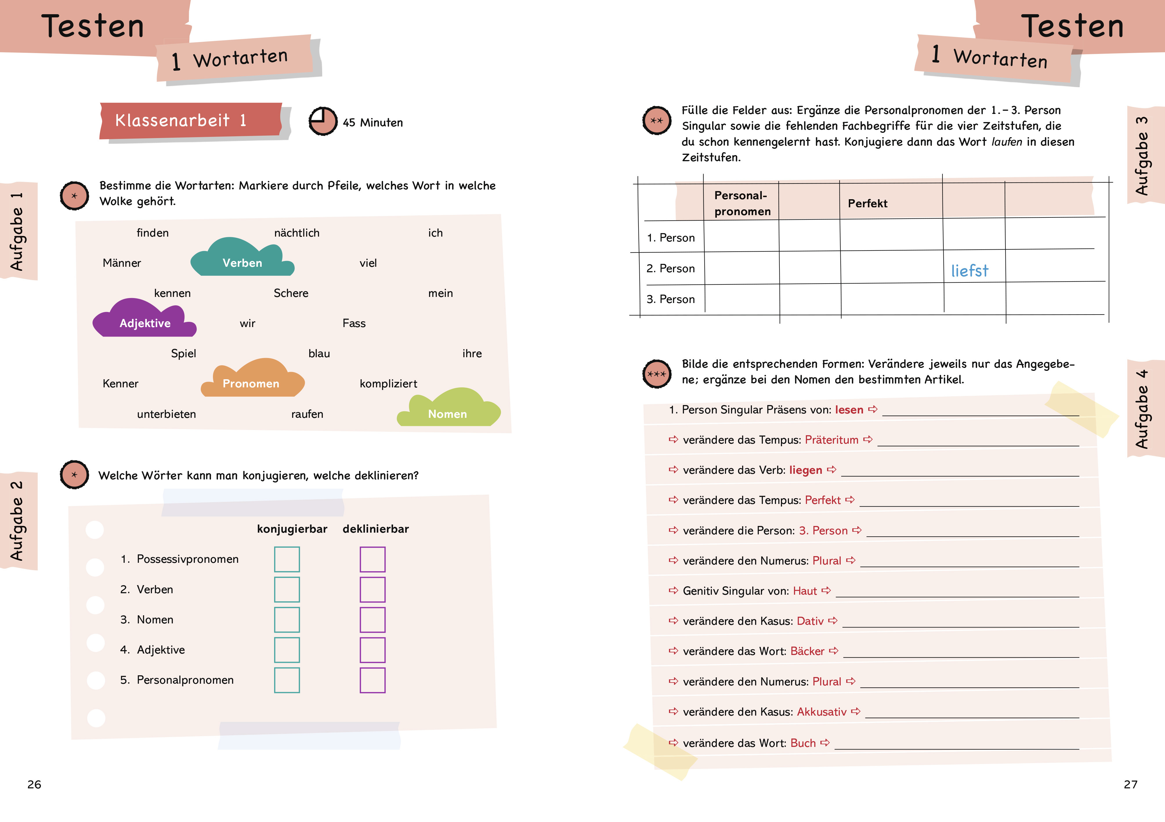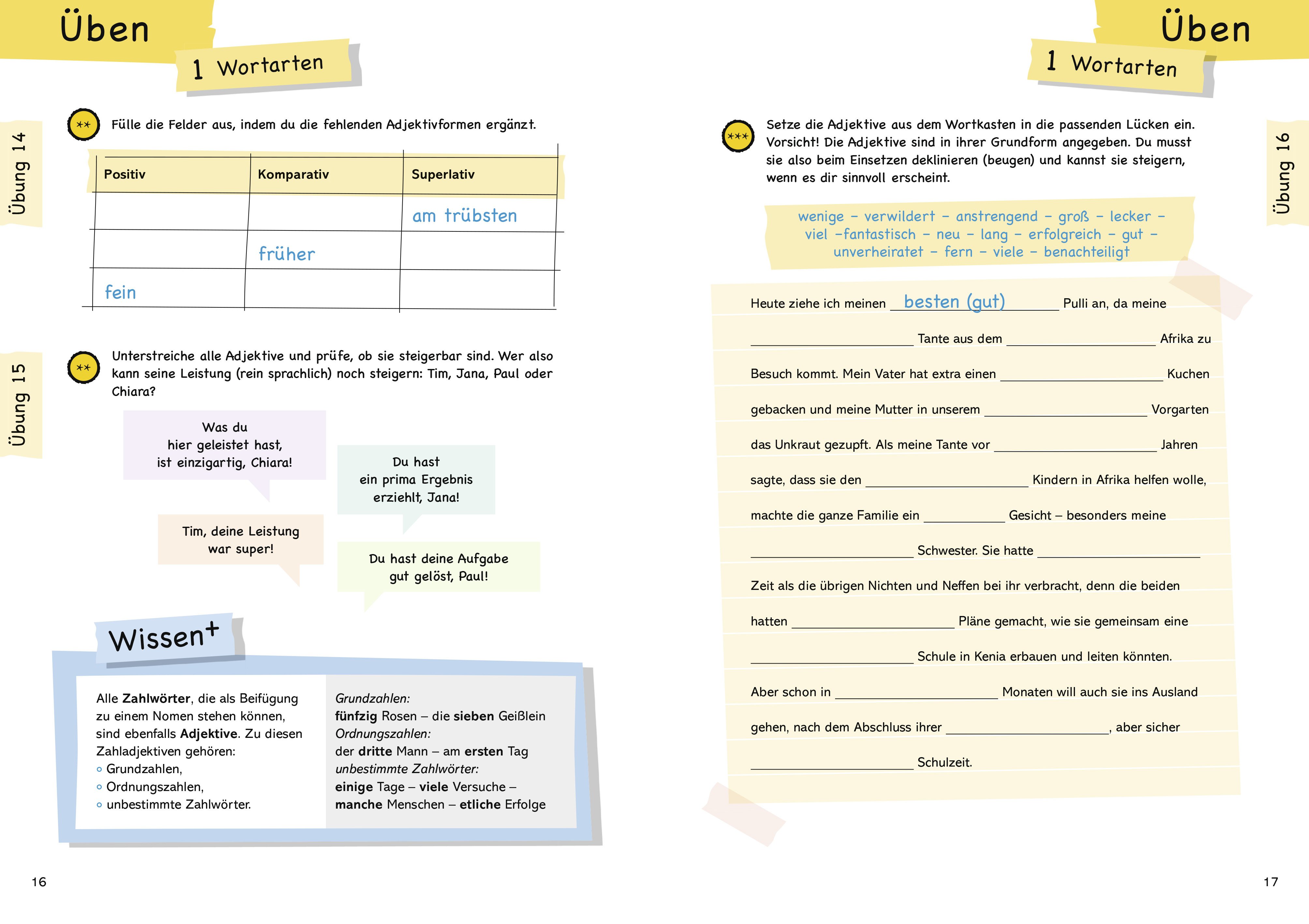 Lerninhalte festigen und Wissenslücken schließen in 3 Schritten: 1. Regeln nachlesen und durch passende Beispiele endlich verstehen. 2. Üben anhand zahlreicher Übungsaufgaben in drei Schwierigkeitsstufen für ein individuelles Training. 3. Lernerfolg kontrolli...