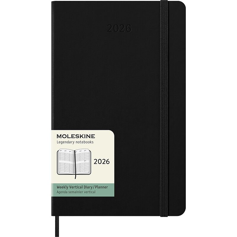 Moleskine 12 Monate Wochenkalender 2026, Large/A5, 1 Wo = 2 Seiten, vertikal, fester Einband, Schwarz