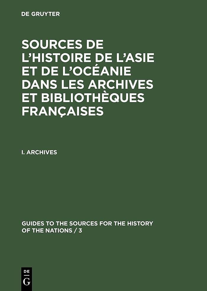 Frontmatter -- PRÉFACE -- TABLE DES MATIÈRES -- COMMISSION FRANÇAISE DU GUIDE DES SOURCES DE L'HISTOIRE DE L ASIE ET DE L'OCEANIE -- Ont collaboré à la rédaction de ce Guide -- INTRODUCTION -- PRÉSENTATION SCIENTIFIQUE -- I. ARCHIVES DE FRANCE -- ARCHIVES...
