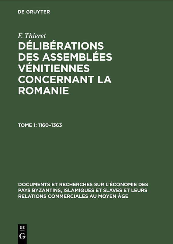 Frontmatter -- LISTE DES ABRÉVIATIONS BIBLIOGRAPHIQUES -- INTRODUCTION -- PREMIÈRE PARTIE. RUBRIQUES DES DÉLIBÉRATIONS DES ASSEMBLÉES VÉNITIENNES 1160-1299 -- DEUXIÈME PARTIE. RÉGESTES DES DÉLIBÉRATIONS1 DES ASSEMBLÉES VÉNITIENNES 1300-1363 -- INDEX GÉNÉRAL --...
