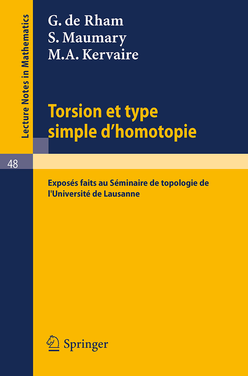 Inhalt Propertes des sommes de gauss et des series de dirichlet theoreme de franz.- Torsion d'un complexe a automorphismes.- Type simple d'homotopie (Théorie algébrique).- Type simple d'homotopie (Théorie géométrique).- Theoreme de mazur.- Theoreme de dualite ...