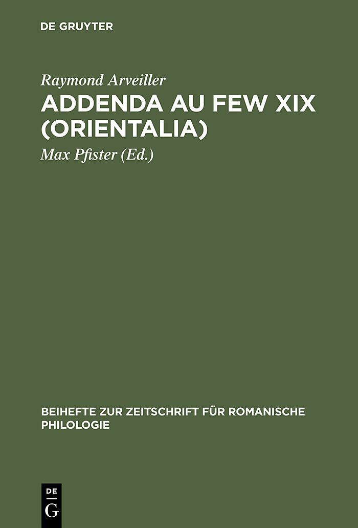 Dieser Sammelband vereinigt 25 Artikel, die Raymond Arveiller in fortlaufender Ergänzung von 1969 bis 1996 in der "Zeitschrift für romanische Philologie (ZrP)" als Addenda zu "FEW XIX (Orientalia)" publiziert hatte. Dieses Beiheft ergänzt s...