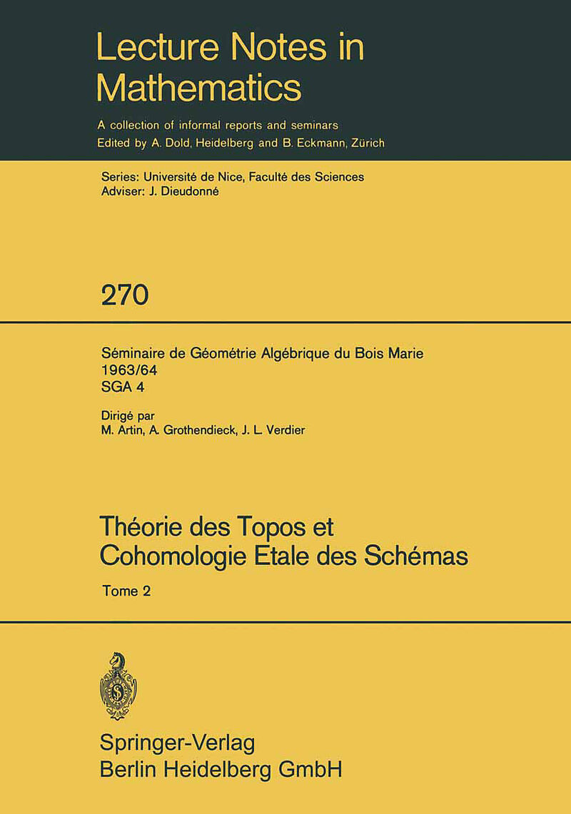 Inhalt Cohomologie dans les topos.- Techniques de descente cohomologique.- Conditions de finitude. Topos et sites fibres. Applications aux questions de passage a la limite.- Site et Topos etales d'un schema.- Foncteurs fibres, supports, etude cohomologiqu...