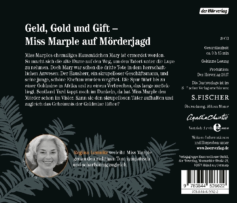 Das Geheimnis Der Goldmine Lemnitz,Regina Geld, Gold, Gift - Miss Marple auf Mörderjagd Miss Marples ehemaliges Hausmädchen Gladys ist ermordet worden. So macht sich die alte Dame auf den Weg, um den Tatort unter die Lupe zu nehmen. Doch Gladys war schon die d...| 1 | Das Geheimnis der Goldmine | 00:15 | |