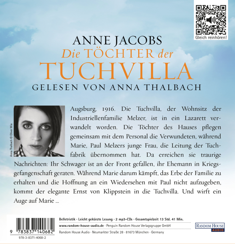 Eine mächtige Familie. Dramatische Verwicklungen. Ein Haus, das mehr als ein Geheimnis birgt. Augsburg, 1916. Die Tuchvilla, der Wohnsitz der Industriellenfamilie Melzer, ist in ein Lazarett verwandelt worden. Die Töchter des Hauses pflegen gemeinsam mit dem P...