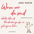 Die Lesungen von Axel Hacke sind legendär, ihm zuzuhören ist ein unvergessliches Erlebnis, wie wenige andere trifft er das Lebensgefühl der Zeit. In seinem neuen Hörbuch umkreist er das Thema, wie ein Leben gelingen kann - oder kurz: Wozu wir da sind. Wie Hack...