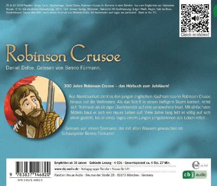 300 Jahre Robinson Crusoe - das Hörbuch zum Jubiläum! Aus Abenteuerlust zieht es den jungen englischen Kaufmannssohn Robinson Crusoe hinaus auf die Weltmeere. Als das Schiff in einem heftigem Sturm kentert, rettet sich Robinson als einziger Überlebender auf ei...