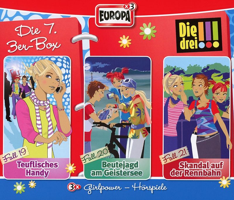 Die 7. 3er-Box (Folge 19-21) Die drei !!! Die drei !!! - 19: Teuflisches Handy: Große Aufregung an Maries Schule. Jimmy, der bekannte Fernsehmoderator des Jugendsenders Afternoon, macht mobil gegen die angebliche Bedrohung durch die Strahlung handelsüblicher H...| 1 | Die drei !!! 19 - Teuflisches Handy | 01:09 |