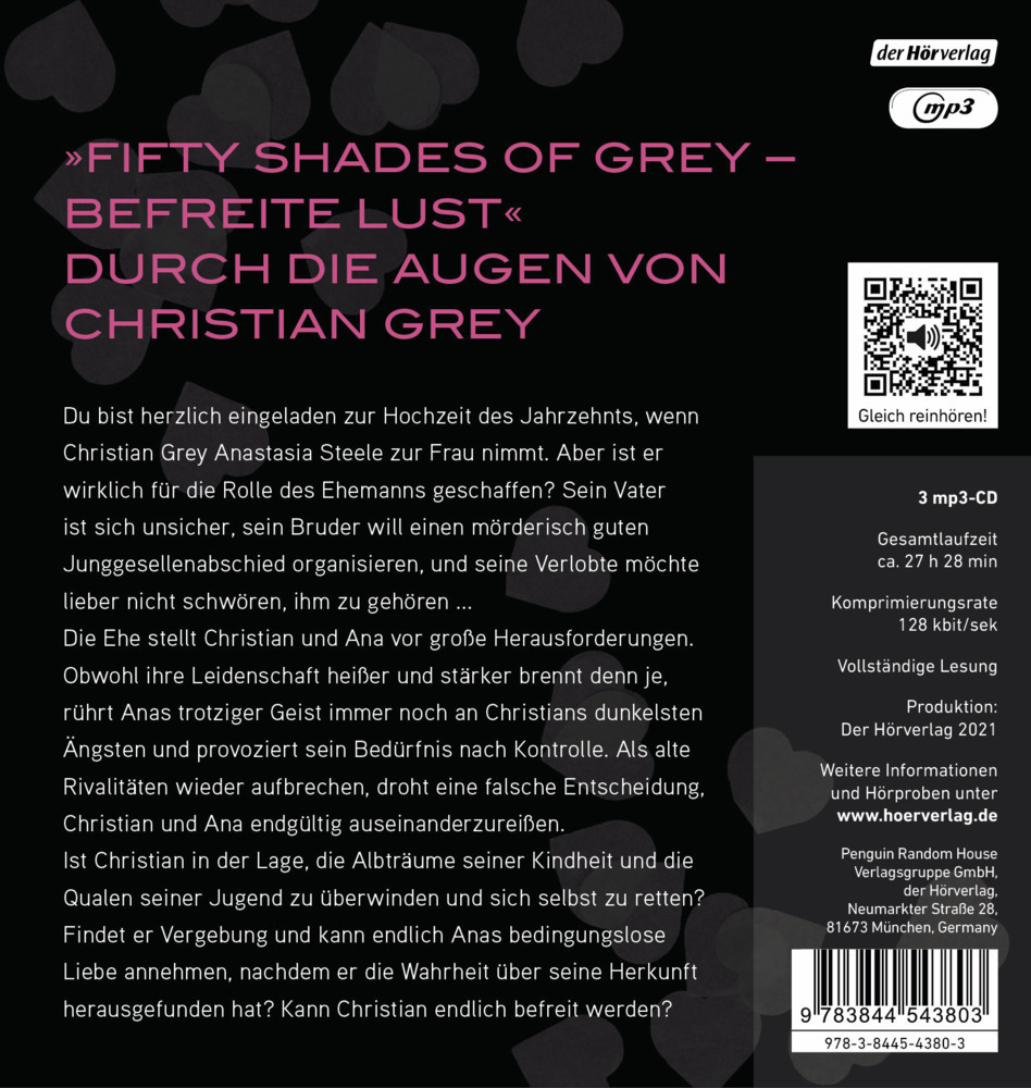 Endlich! Band 3 von »Fifty Shades of Grey« aus Christians Sicht als Hörbuch Du bist herzlich eingeladen zur Hochzeit des Jahrzehnts, wenn Christian Grey Anastasia Steele zur Frau nimmt. Aber ist er wirklich für die Rolle des Ehemanns geschaffen? Sein Vater ist...