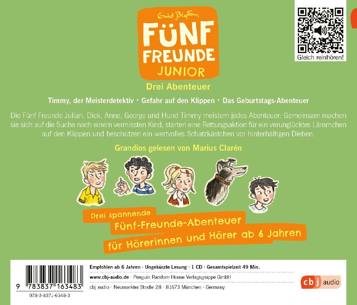 Drei "Fünf-Freunde"-Abenteuer für die Kleinen ab 6 Jahren Die Fünf Freunde Julian, Dick, Anne, George und Timmy der Hund meistern jedes Abenteuer und halten immer zusammen: Gemeinsam machen sie sich auf die Suche nach einem vermissten Kind, starten e...