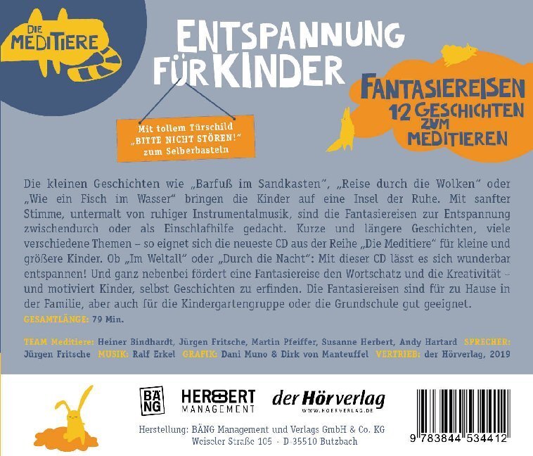Ob »Reise durch die Wolken« oder »Unterwassertraum«: Mit dieser CD lässt es sich wunderbar entspannen! Ein Tag mit Schule, Sport und Spielen ist für viele Kinder aufregend. Wie schön, wenn sie sich nach den Aktivitäten mit kleinen Geschichte wie auf einer »Ins...
