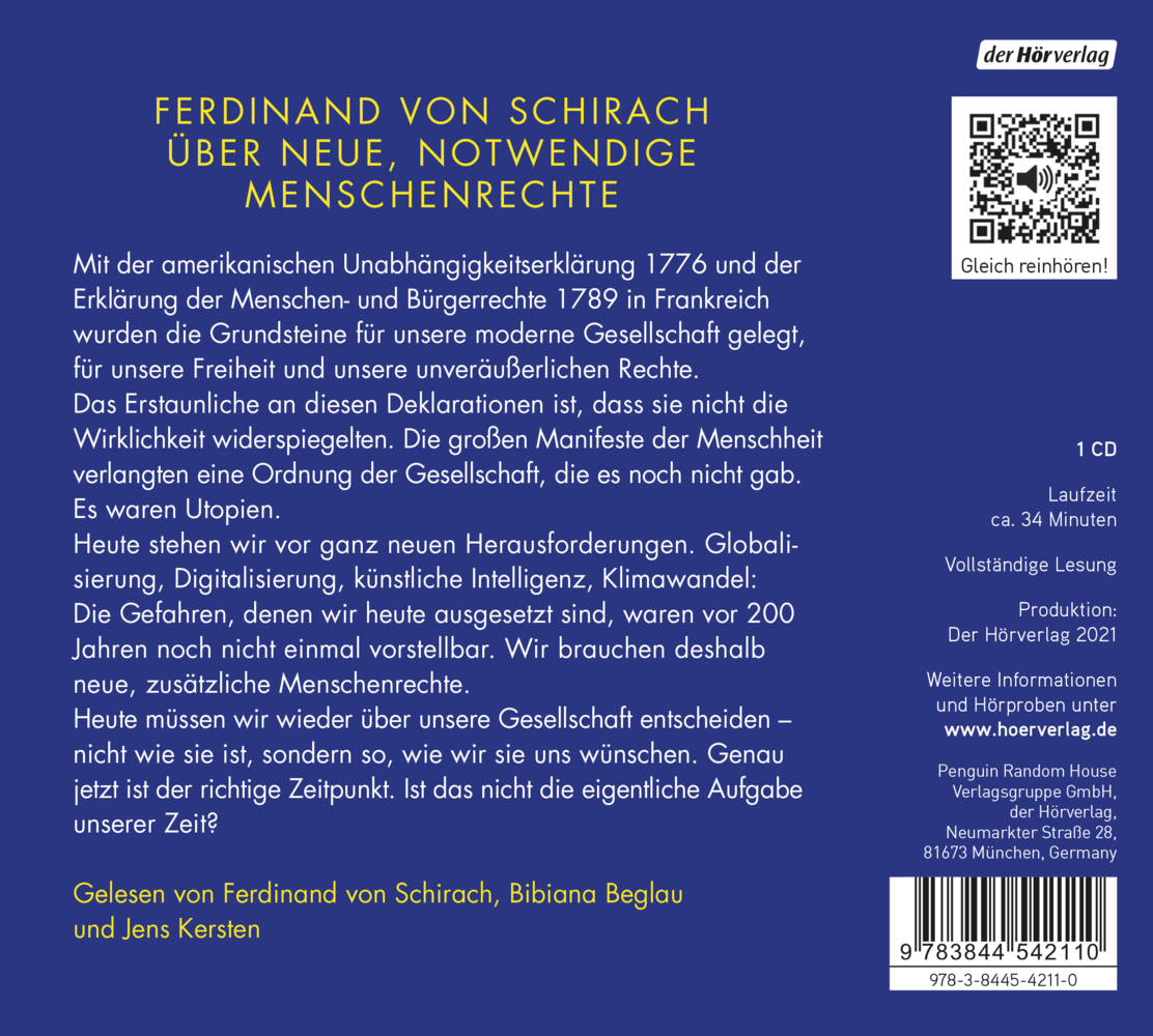Ferdinand von Schirachs inspirierendes Plädoyer: Warum wir neue europäische Grundrechte brauchen Mit der amerikanischen Unabhängigkeitserklärung 1776 und der Erklärung der Menschen- und Bürgerrechte 1789 in Frankreich wurden die Grundsteine für unsere moderne ...