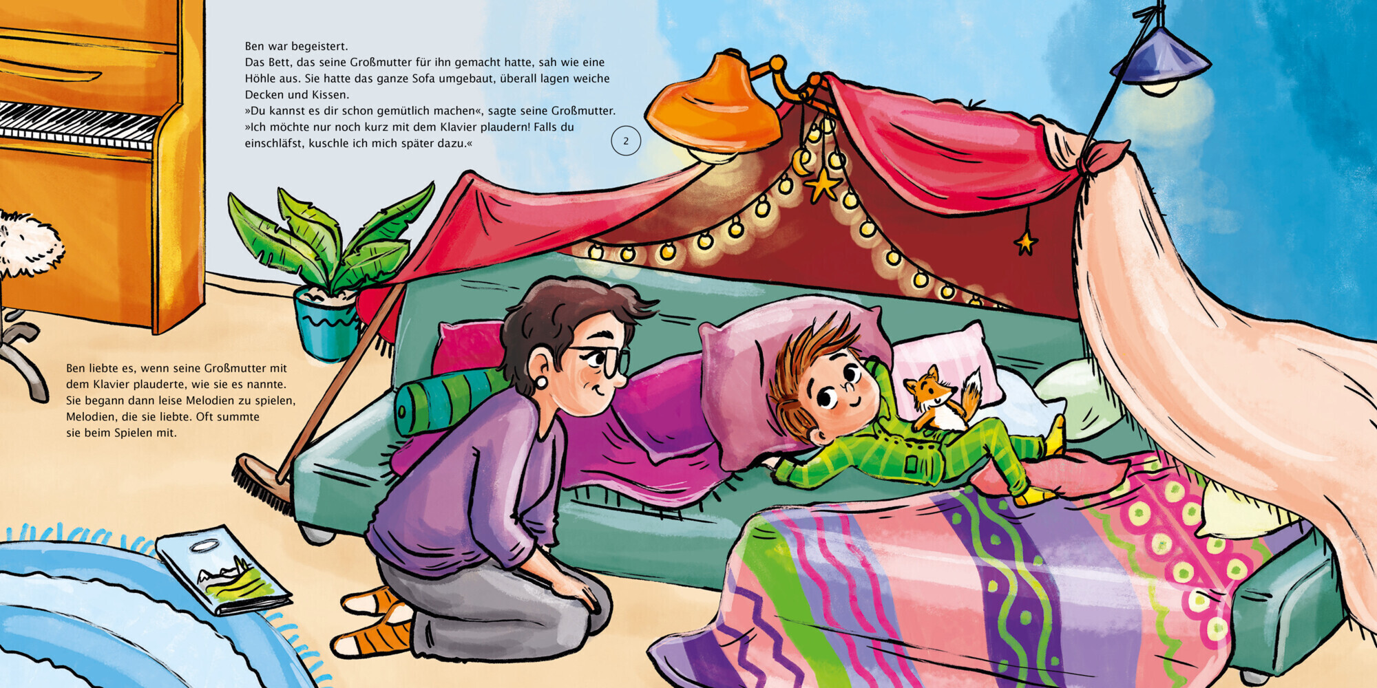 Auf Traumreise im Mondschein mit Beethovens weltbekannter Klaviersonate Oma hat alles für Jans Übernachtung bei ihr vorbereitet. Sogar eine Höhle aus dem Sofa, Kissen und Polstern! Während er sich einkuschelt und immer müder wird, spielt seine Oma eine besond...