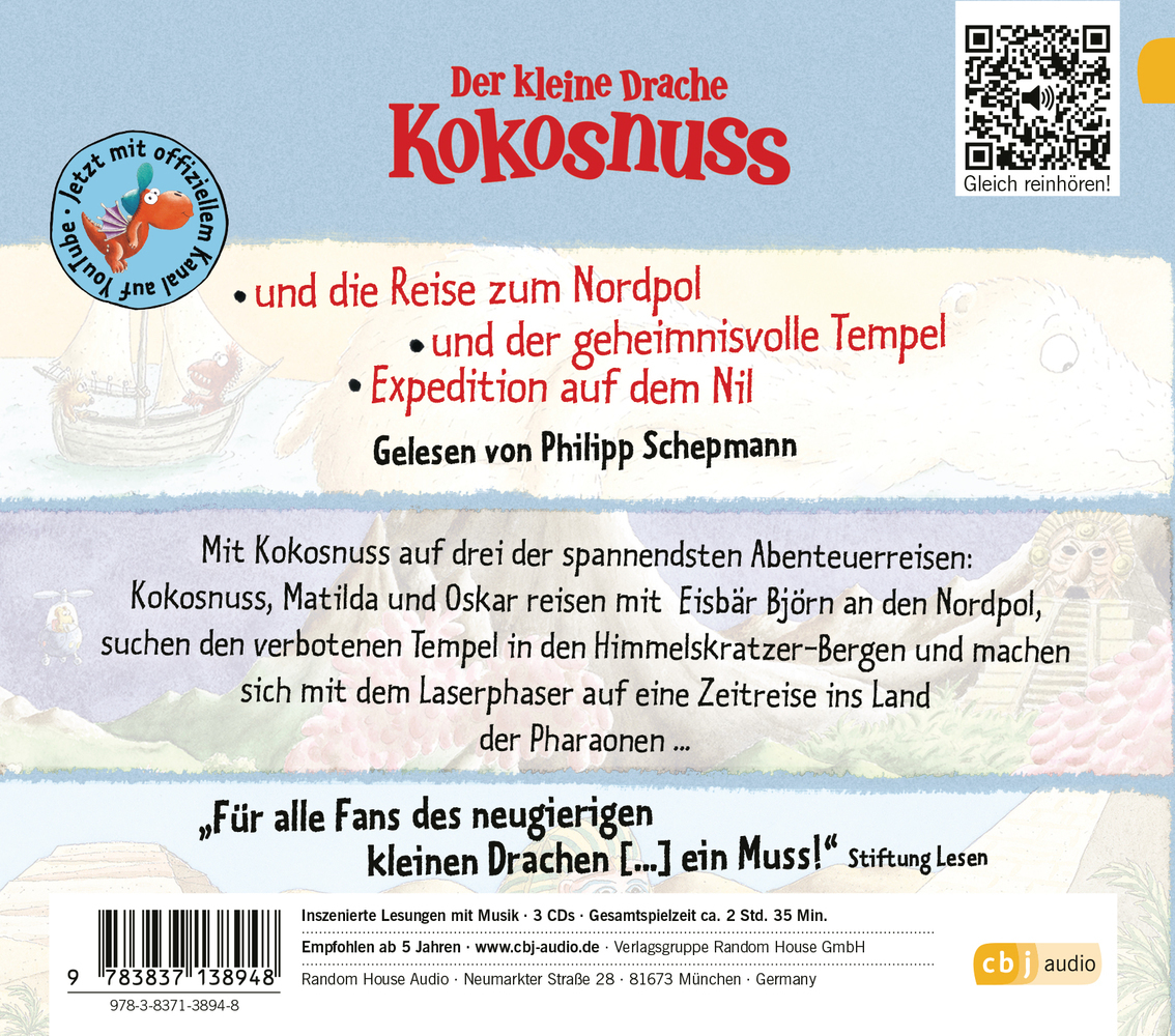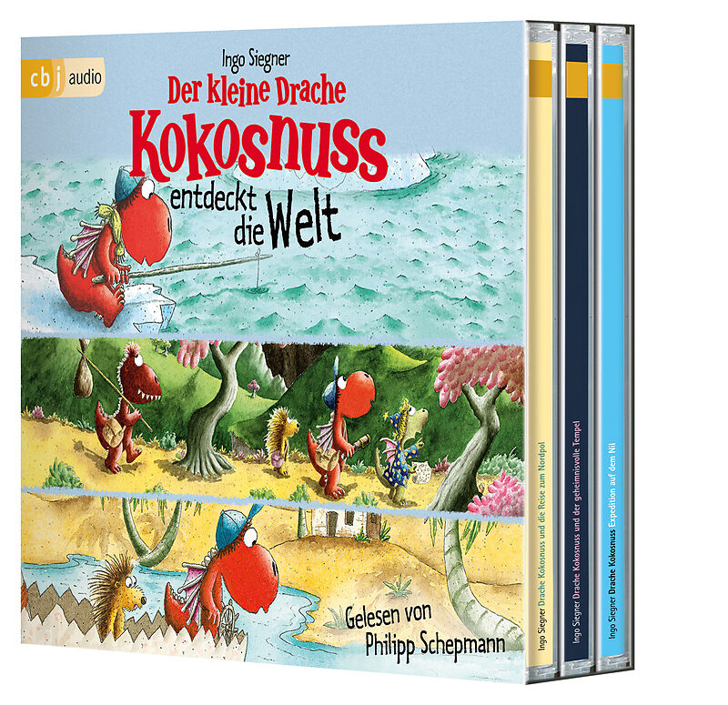 Der Kleine Drache Kokosnuss Entdeckt Die Welt Schepmann,Philipp Drei Kokosnuss-Abenteuer in der Jubiläumsbox! Der kleine Drache Kokosnuss freut sich über seinen 15. Geburtstag! Zu diesem Anlass nimmt er seine Hörer mit auf gleich drei der spannendsten Abenteue...| 1 | Der kleine Drache Kokosnuss und die Reise zum Nordpol | 02:22 | |